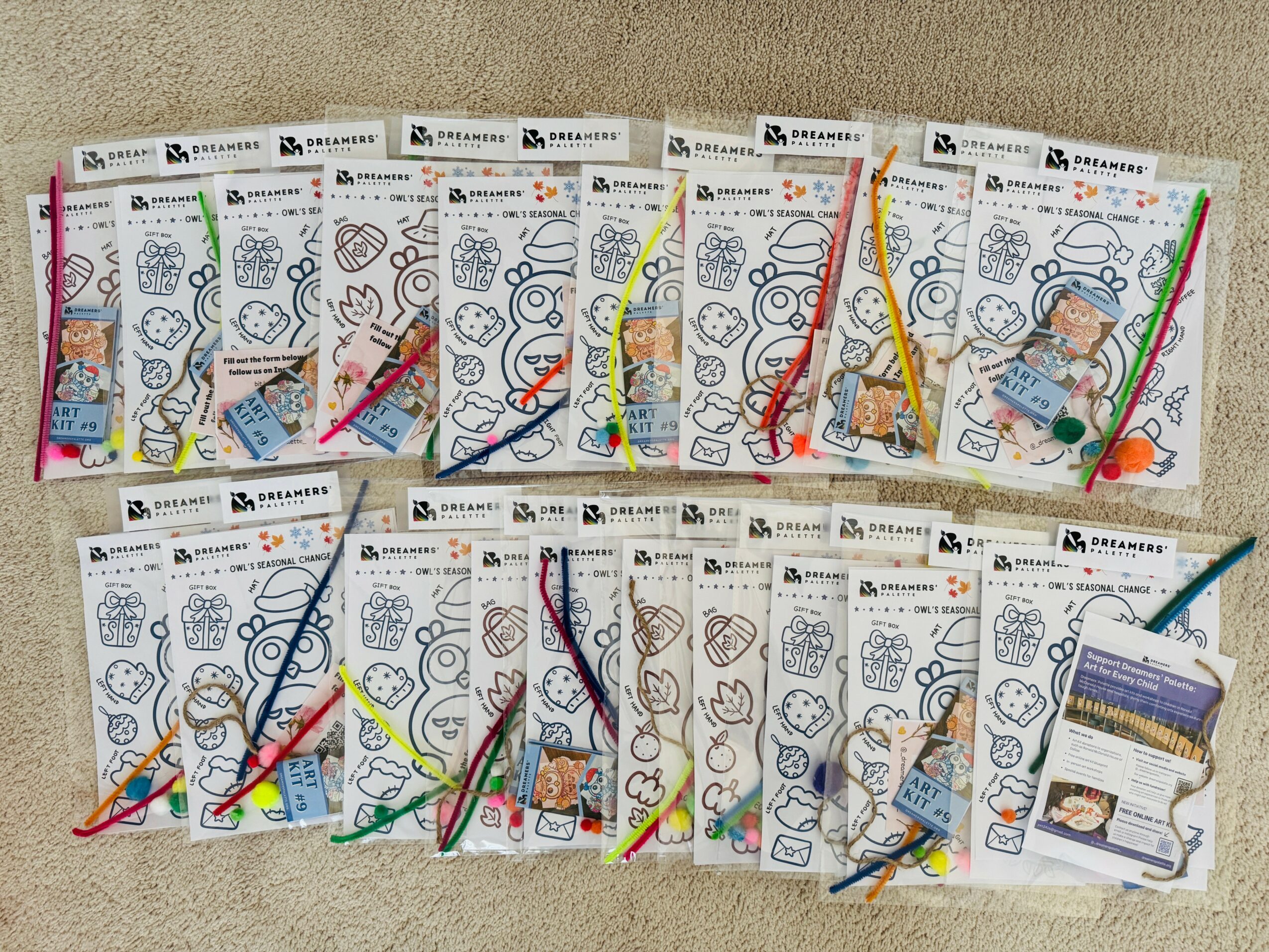 With the goal of furthering arts education in the DFW area, Dreamers’ Palette provides children-oriented art kits and in-person art workshops to children every month at various local child nonprofits, with Ronald McDonald House of Dallas being the primary location. This art kit is a one-stop-shop package that includes a printed blueprint, instruction pamphlet, and necessary supplies/materials for the art project. Its primary intention is to inspire children to create and explore art on their own and take advantage of creative freedom in their own unique ways. Throughout time, I hope that art kits help children learn about diverse aspects of art-making and empower them to be authentic to their interests and potential. Through today, Dreamers’ Palette has been producing 20-40 physical art kits to donate to local nonprofits and produced a total of 320+ art kits to this date. Furthermore, in order to expand the art kit’s reach, I’ve recently decided to create an online downloadable version of the art kit as a blueprint for children to whom I might not be able to donate physical art kits. All the art kit blueprints, pamphlets, as well as workshop stories are posted as blogs on Dreamers’ Palette website, and I can recount the behind-the-scenes as well as step-by-step processes through a consistent blog update. However, there are still a lot of local nonprofits and areas I seek to explore, and increasing awareness of the art kits through the website and Instagram is one of my next action items.