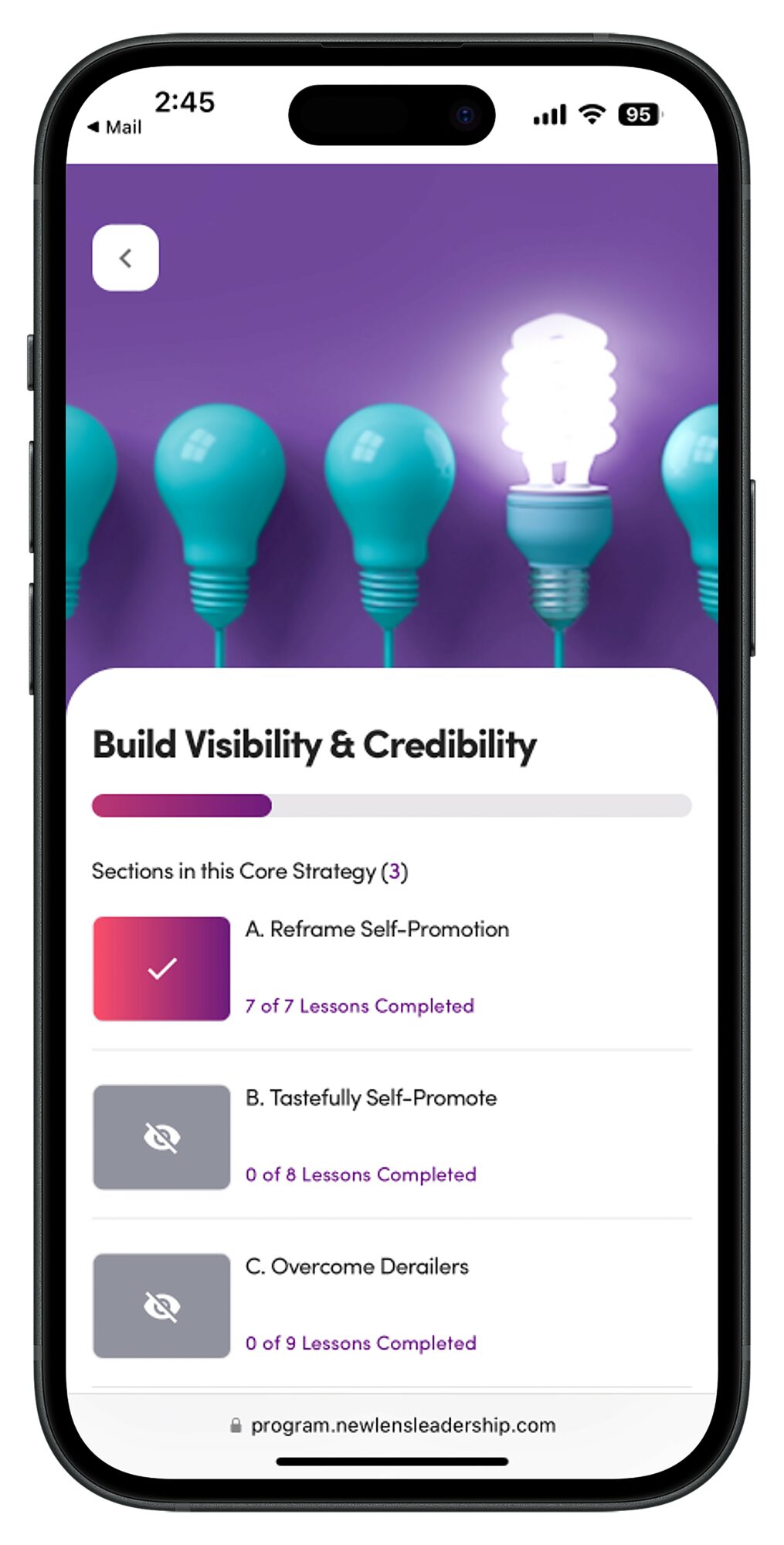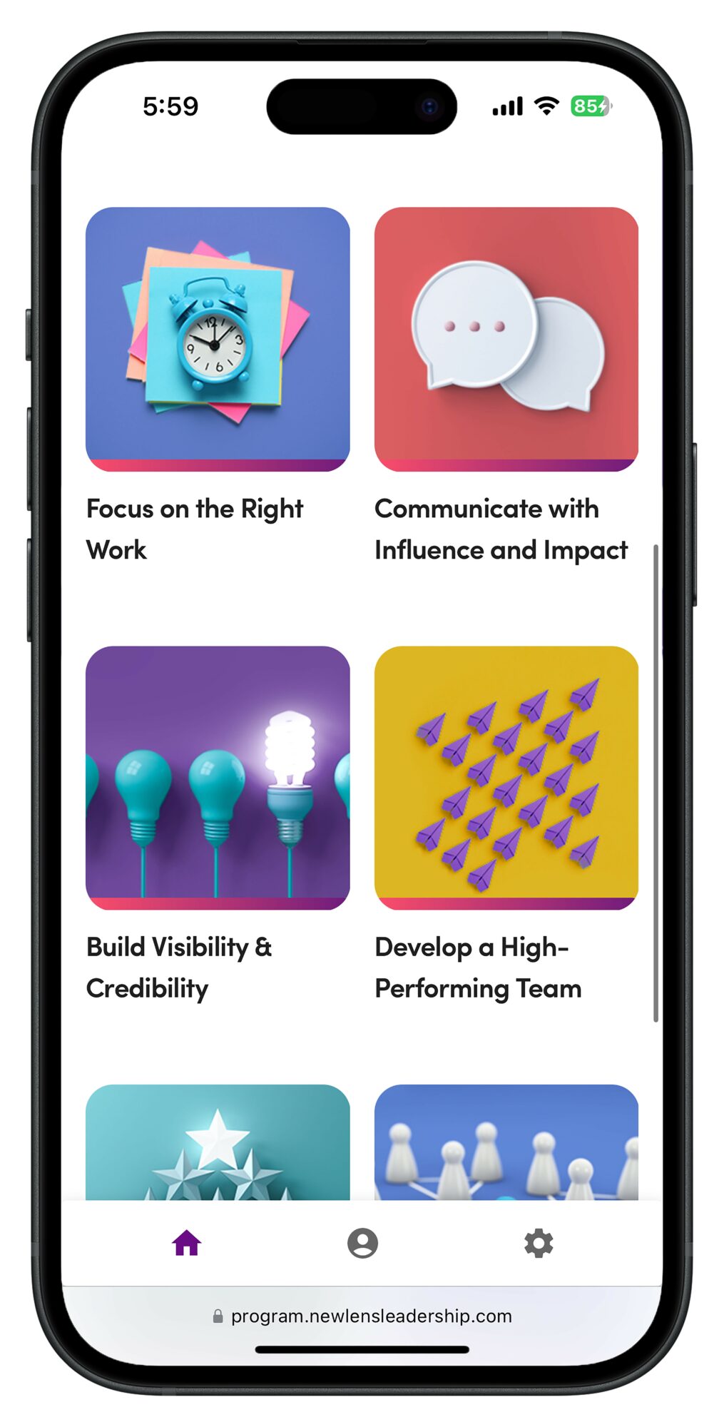 That proven success is what led us to create New Lens, our leadership development platform that is designed to scale what works. We took the most effective elements, tools, and strategies from our high-touch coaching and packaged them into a digital experience that delivers relevant content in digestible ways—and makes it easy for people to apply what they’re learning in the flow of work. In addition to putting a coach in your pocket, the experience integrates so many principles of what makes coaching effective.