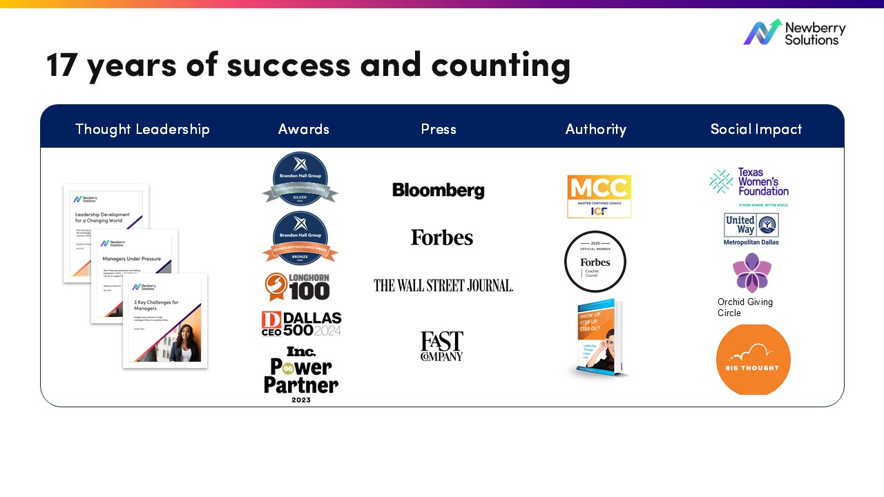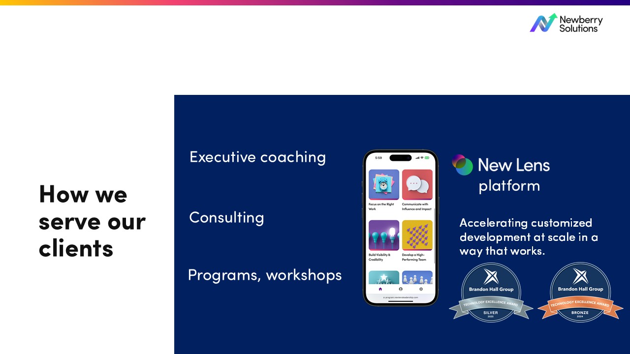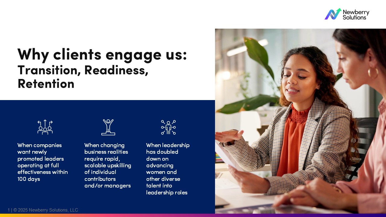 I’m the founder and CEO of Newberry Solutions, a leadership development firm that’s spent the last 17 years helping leaders and organizations achieve high performance and get results they couldn’t before. Before launching this business, I spent 14 years at Deloitte Consulting as a strategy, operations, and human capital consultant, and later served as an HR executive. All of that experience shaped how we work today—rooted in business realities, tested in complex environments, and focused on strategies that make a real difference.