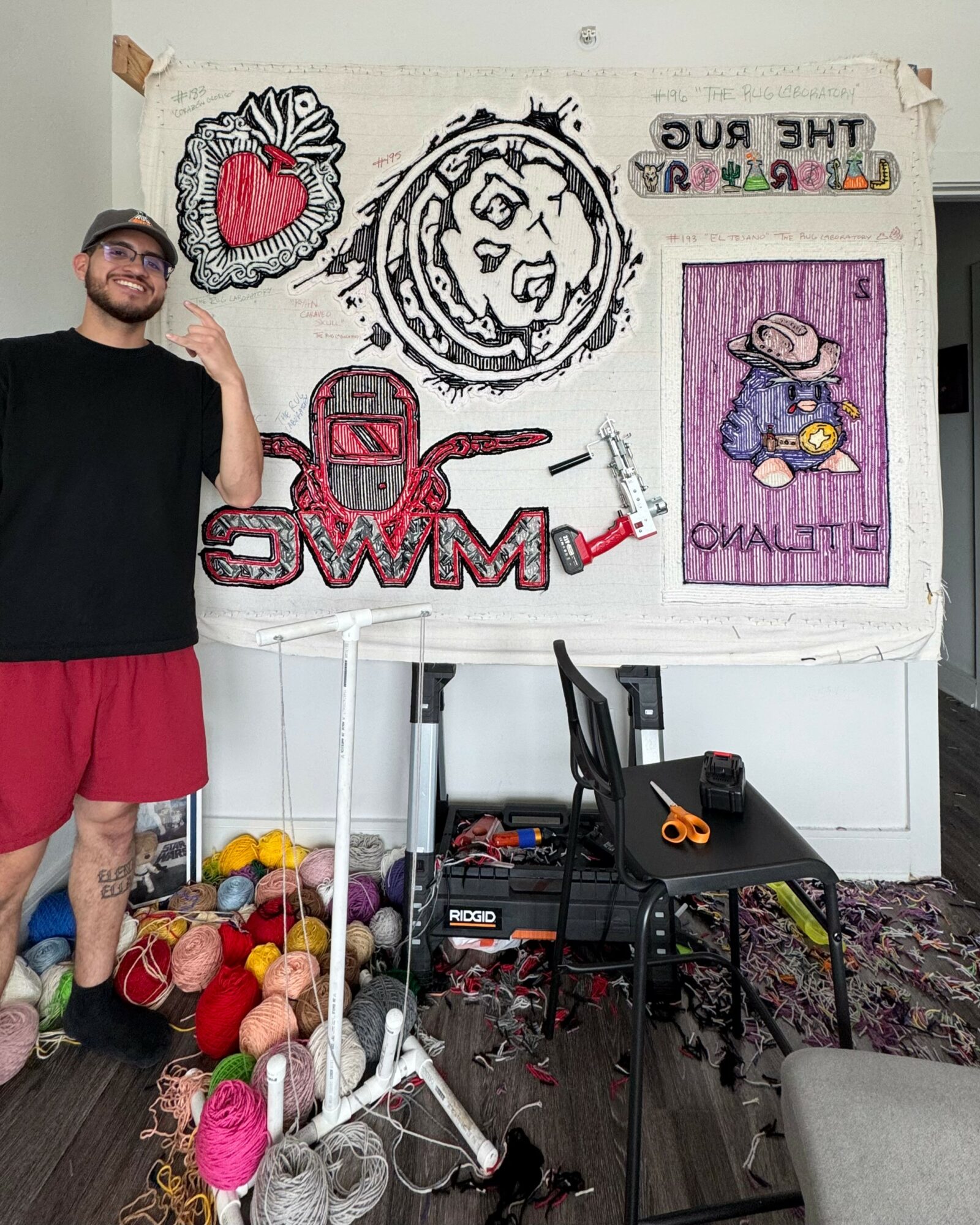 My name is Steven Reyes born in the beautiful city of Fort Worth, TX and I am an artist and blue collar entrepreneur. I am the mind/artist behind The Rug Laboratory and the elbow grease/operator/designer behind Mike Reyes Heating and Air Conditioning. Rugs and HVAC, that’s my life right now. Two entirely different polarities, but I have somehow found a balance between the two, or at least working toward that balance every day. What makes my brands unique? I like to think both of these are two sides of the same coin, and that coin being me. Mike Reyes Heating and Air Conditioning is a company I am operating for my father, I feel that this brand represents my technical, disciplined, systems thinking, process creating, professional side of me. While The Rug Laboratory represents my wild, mad scientist, no walls, experimental, free version of myself. Somehow for me they both coincide with one another. Whether it be working in a 140 degree attics, transitioning/modernizing a once paper only business into the digital world, drawing up HVAC designs and future rug designs, or being 9+ hours into an art piece, it all feeds the same part for me. The goal is pretty much the same for me in both realms, to create something that speaks for itself and does something for people. Whether its an act of service or an act of freedom through creation, I want to make sure each of these serve the greater good of people. There is not a day that I don’t do something toward each or both of these. The funny part is that I don’t really know what I’m building them to just yet, but I know something is being built. One brick at a time. One day at a time. Every day the vision and destination get that much clearer for me. Just like a sculpture with a brick of marble, you just gotta chip at it and see what comes from it.