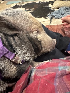 I grew up on a farm that provided most of the food that our family of 8, but have always wanted a pet pig. In 2021, right before Snowmaggedon, we were finally able to adopt a piggy. His brother, at the time, was going to another owner. We told them that if it didn’t work out, call me, we will take him. Well, it didn’t work out, so suddenly we had 2 very active piggies in our house, in the middle of what felt like a never ending ice storm. We loved it. This whole thing lead me to do more research about the pig world and I began seeing people offer their baby pigs up for slaughter because they couldn’t handle the work it takes to care for their animals. People go to get a pet piggy with the idea that they are getting what is advertised as a teacup or micro-mini-pig, but this turns out to be a misnomer. A mini pig, it turns out, is anything under 300 pounds! Well, the overwhelming need that occurs when these cute little babies turn into HUGE indoor pets led to many owners in search of a pig slaughter house. This is what led us to start a rescue. We decided that we had the room and the heart to start our rescue in October of 2021. I had many people reaching out to me, but I had to do a ton of research. I had to make choices and offer input when someone thought they couldn’t keep a pig… “Have you checked your city ordinance?” “Have you reinforced your fence so your piggies can’t get out?” “Have you had your piggies neutered/spayed?” “Have you separated the males from the females?” Oft times, just a little bit of advice goes a long way and the desperate owner realizes that they are capable and willing to make it work on their own. Sometimes, though, we have to come and get that baby to give them a better situation. To date, we have 24 pigs, and 45 animals total. All have been rescues.