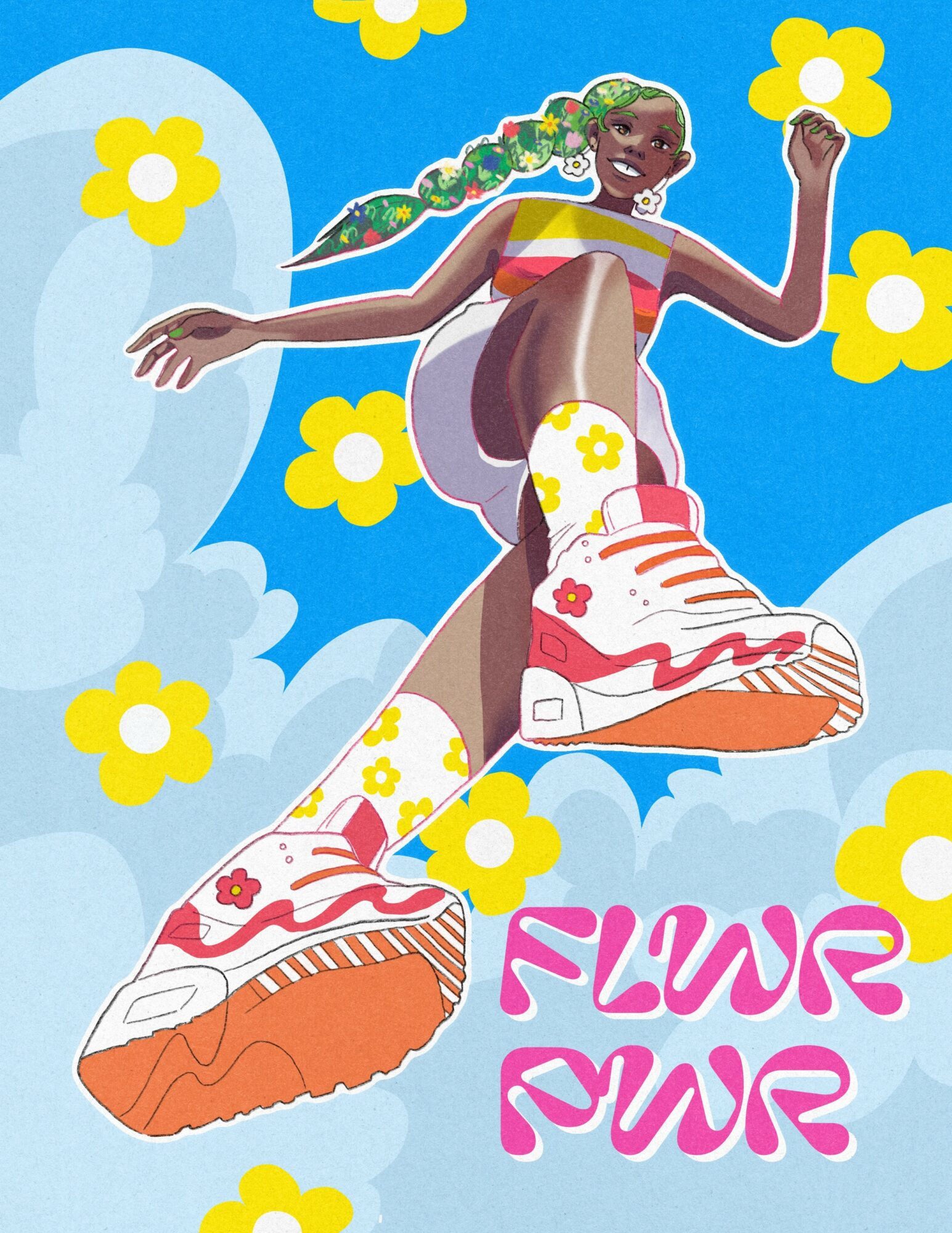 I am known for featuring whimsical themes, feminine characters, bright colors, and texture in my work. A lot of my work also focuses on escaping the anxieties of real life and traveling to made up, whimsical worlds. I love the ideation part of the creative process because it allows me to use my creative problem solving skills to the fullest.