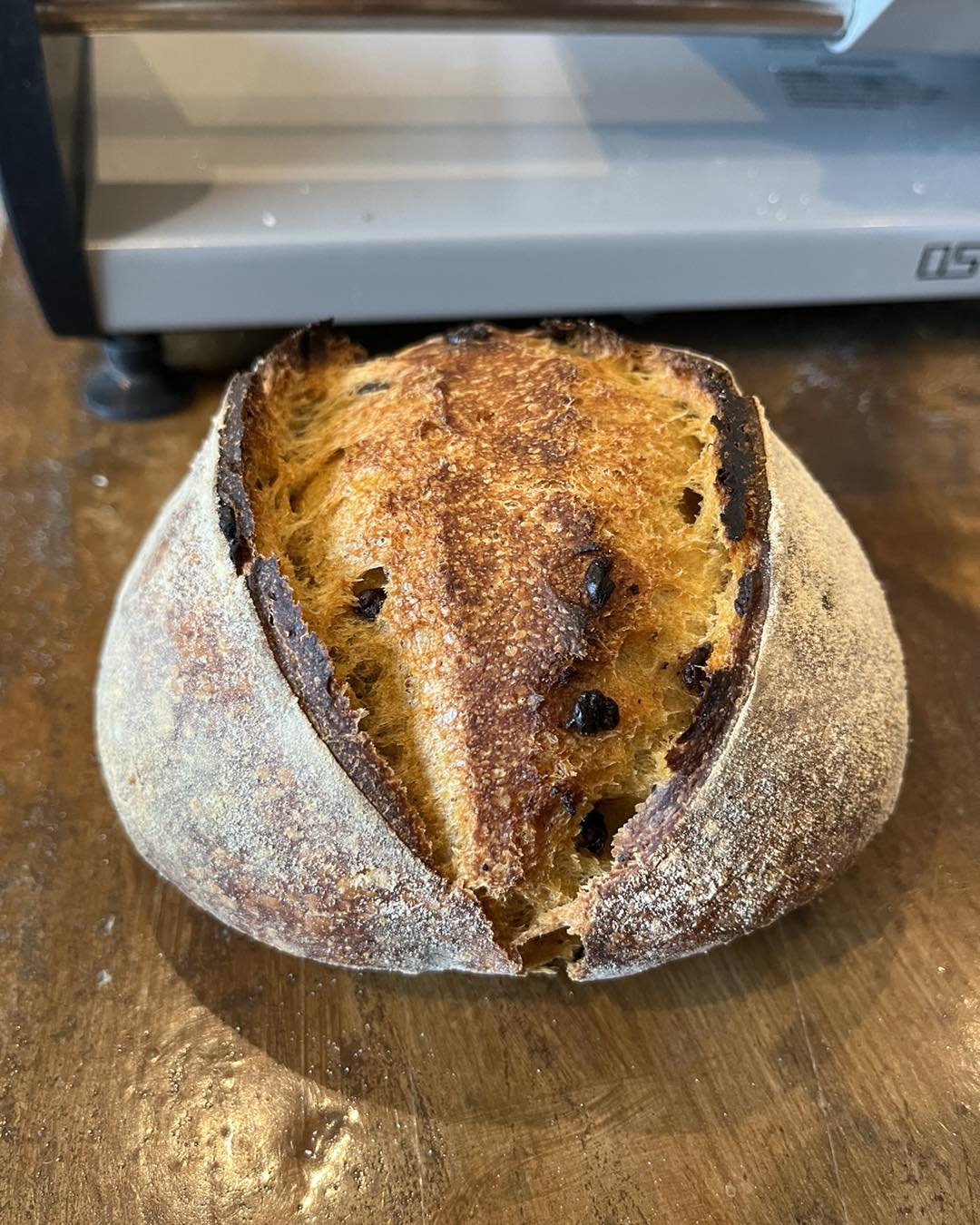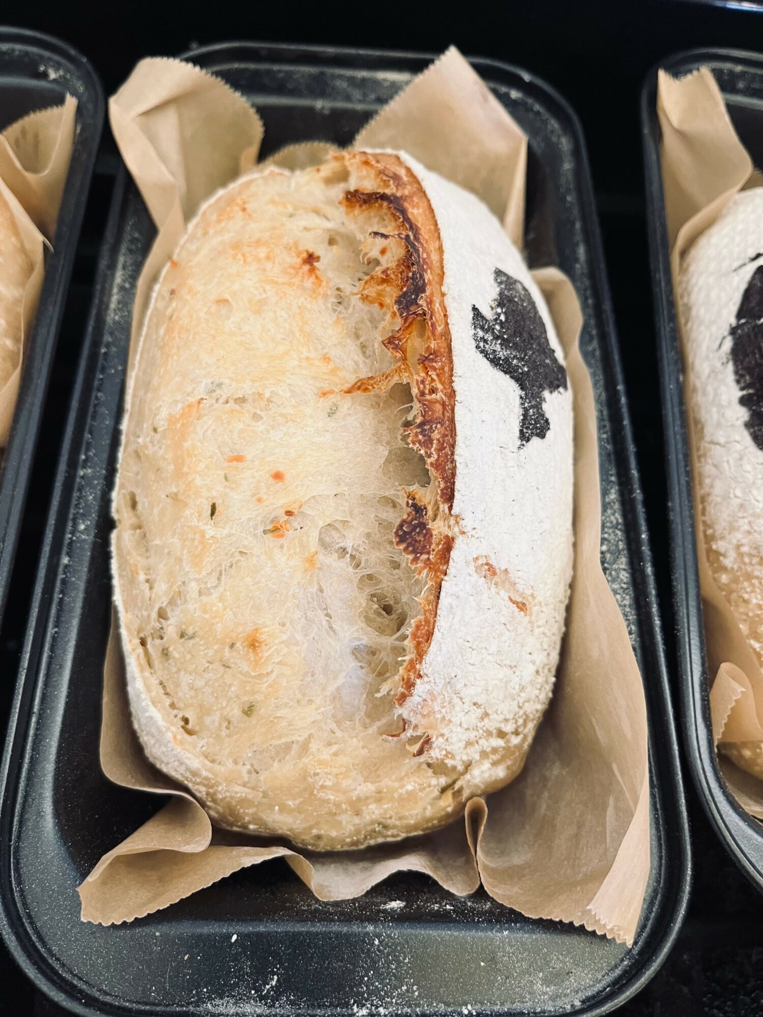 Now we are up to 11 or 12 varieties of sourdough breads: Traditional, Rosemary Garlic, Garlic Parmesan, Jalapeno Cheddar, Tomato Basil, Sun dried tomato mozzarella, Cinnamon Maple Walnut, Pumpkin chocolate chip, Asiago black pepper, Banana chocolate chip and Lemon blueberry. We also make sourdough English Muffins and Sourdough Cinnamon Rolls. There are many other items to come!