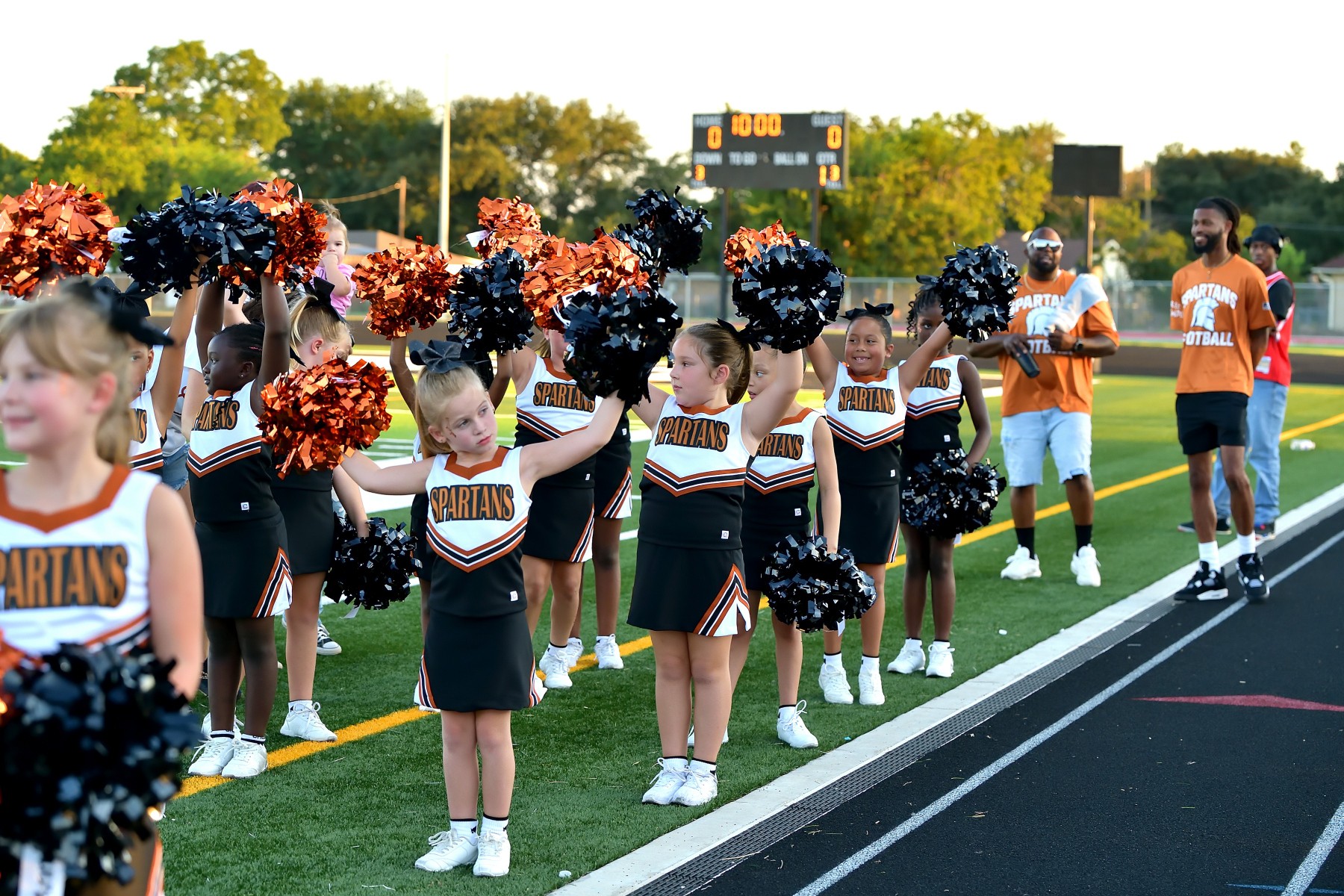 Brand-wise, I’m most proud of what the Spartan name has come to mean in this community. The burnt orange and black are instantly recognizable. When people see that Spartan helmet, they know it stands for excellence, unity, and pride. We have a reputation for being flashy — but it’s not about ego, it’s about energy. We bring excitement and production value to everything we do because these kids deserve that. They deserve a program that treats them like stars and a community that celebrates them like family.