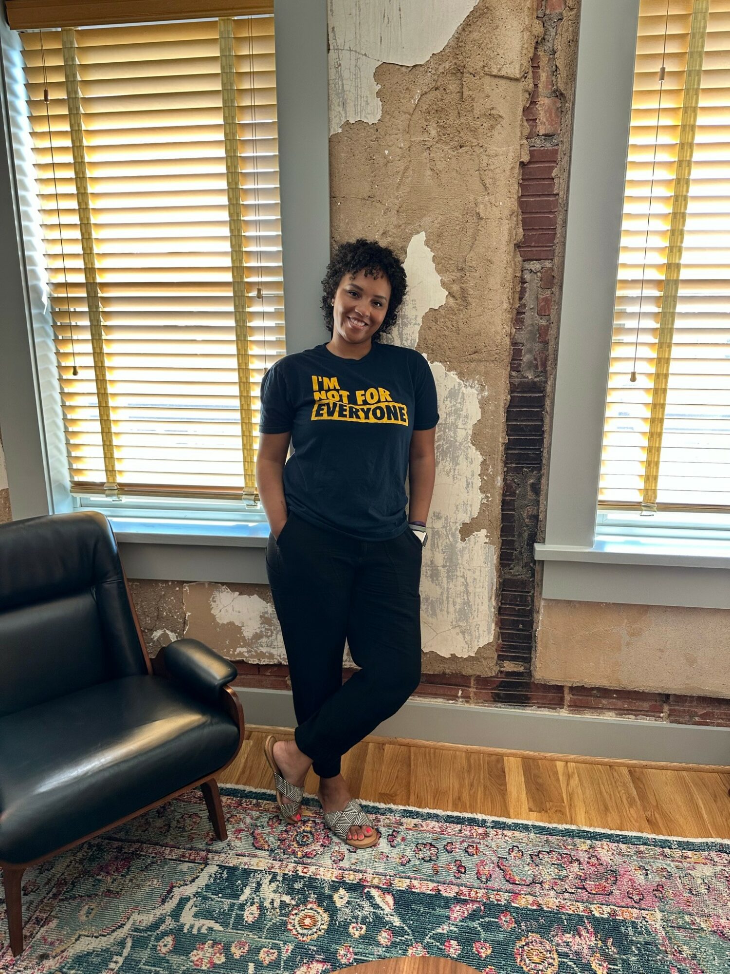 You can expect to see me in a graphic tee with a positive message + a pair of Chuck Taylors. I love a good graphic tee and intentionally wear positive messages I secretly want to channel to my clients with each visit. This is a form of self-expression for me, and who doesn’t love a good t-shirt with a positive affirmation or mantra?!