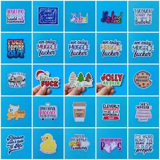 Since that first market, I have participated in several more and have slowly started building my customer base. I am still learning how to use my machine, which sounds crazy since I’ve had it for 4 years but I’m more comfortable with it and with the results I have achieved. My current favorite things to make are sarcastic stickers and shaker toppers!