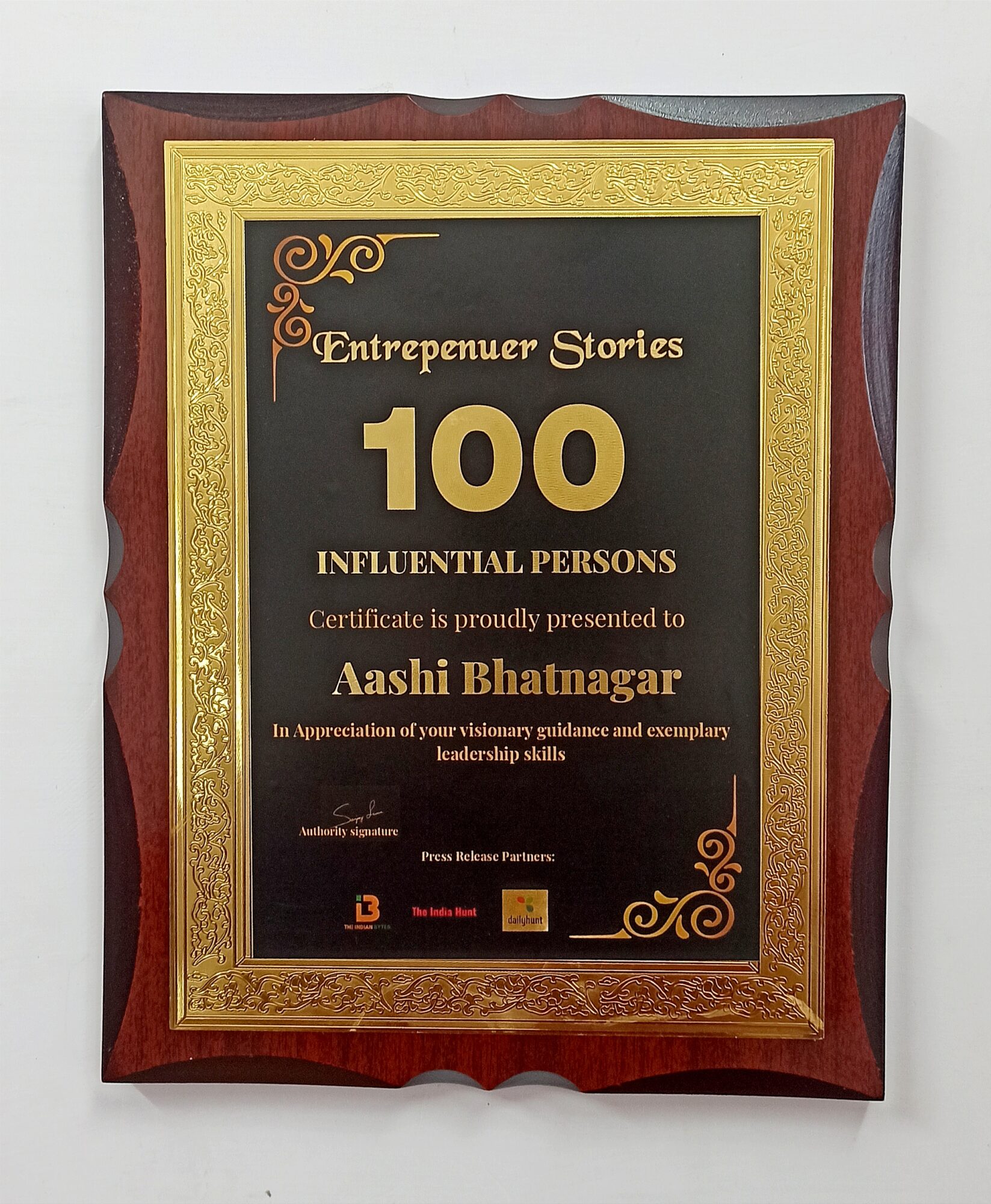 I’ve been featured among the top 100 influential persons by Entrepeneur Stories.