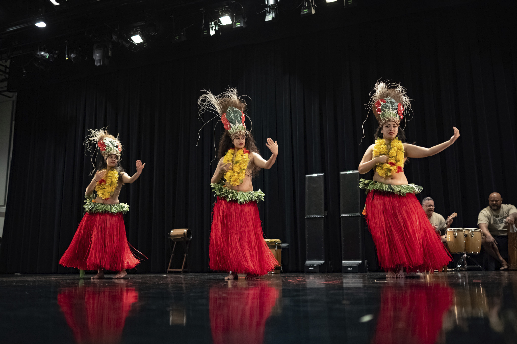 What sets our group apart from others is our LIVE music & LIVE drumming!!! We play our own instruments (drums, ukuleles & guitars) and sing live – NO RECORDINGS. Authentic costumes and original choreography.