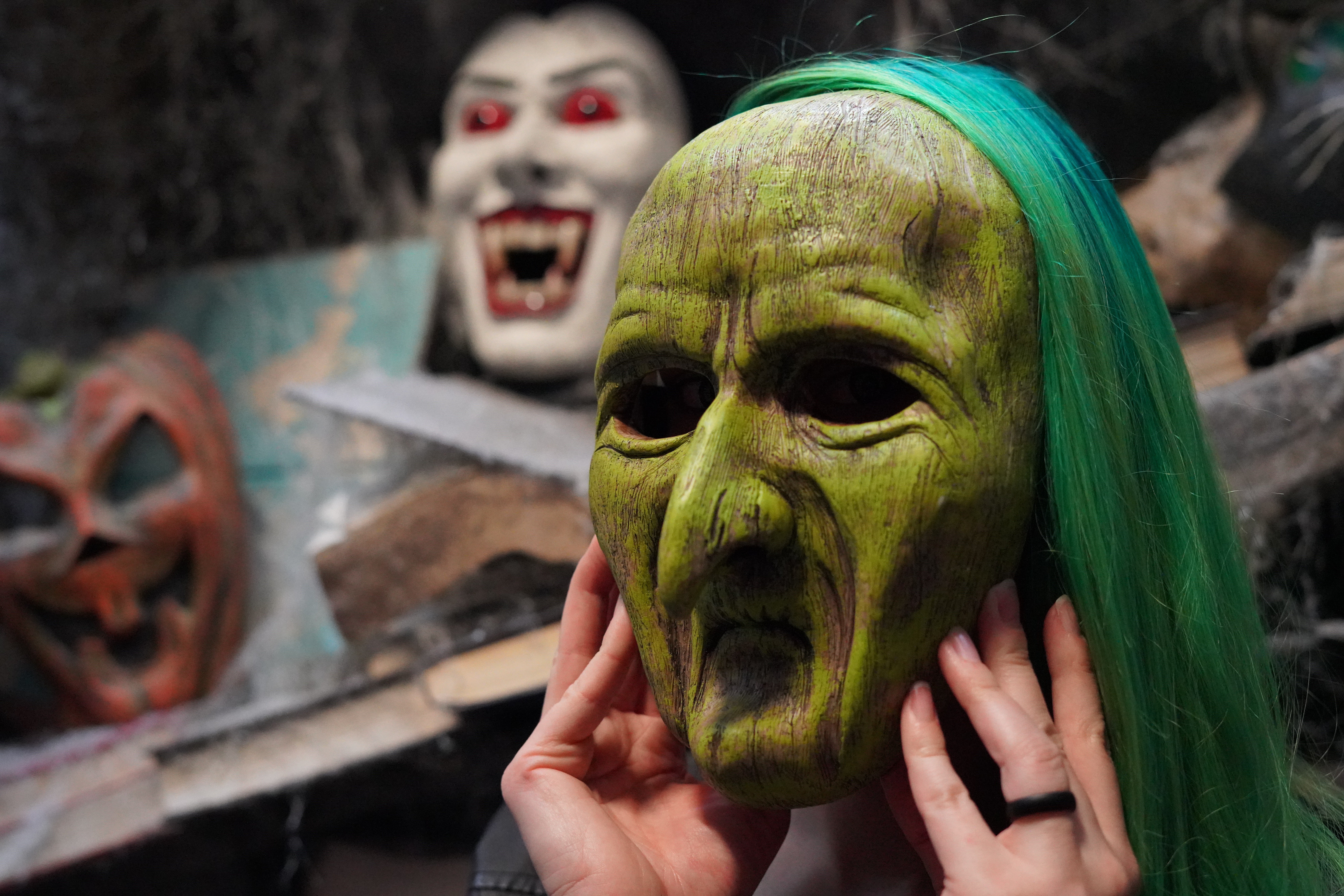 Alcala Studios is the parent company that hosts “Edyn Rashae Studios” and “Ghoulio”. It is a multi-faceted production company that blends physical art with cinematic storytelling. On the sculptural side, Edyn Rashae Studios creates high quality masks, props, and creatures inspired by folk tales and vintage Halloween. Though this area is managed by me, both of us are involved in every step of the process. In fact, quite literally, both of us have our hands in the clay sculpting. Our sculptures are in five consignment shops nationwide, hold eight film credits (excluding Ghoulio’s film work), and have been displayed at over a dozen national art exhibitions. One of the things I’m most proud of is a mask we made together for a film with singer of Slipknot, Corey Taylor, in it. The mask was sculpted by Ghoulio, while I molded, casted, and painted it. Slipknot just happens to be one of both our favorite bands, and Slipknot mask replicas were some of the first mask creations made by Ghoulio back when he was in high school, so it was like a full circle moment for us! We even had the opportunity to meet him and have him sign a blank copy of the mask which we now proudly display in our office.