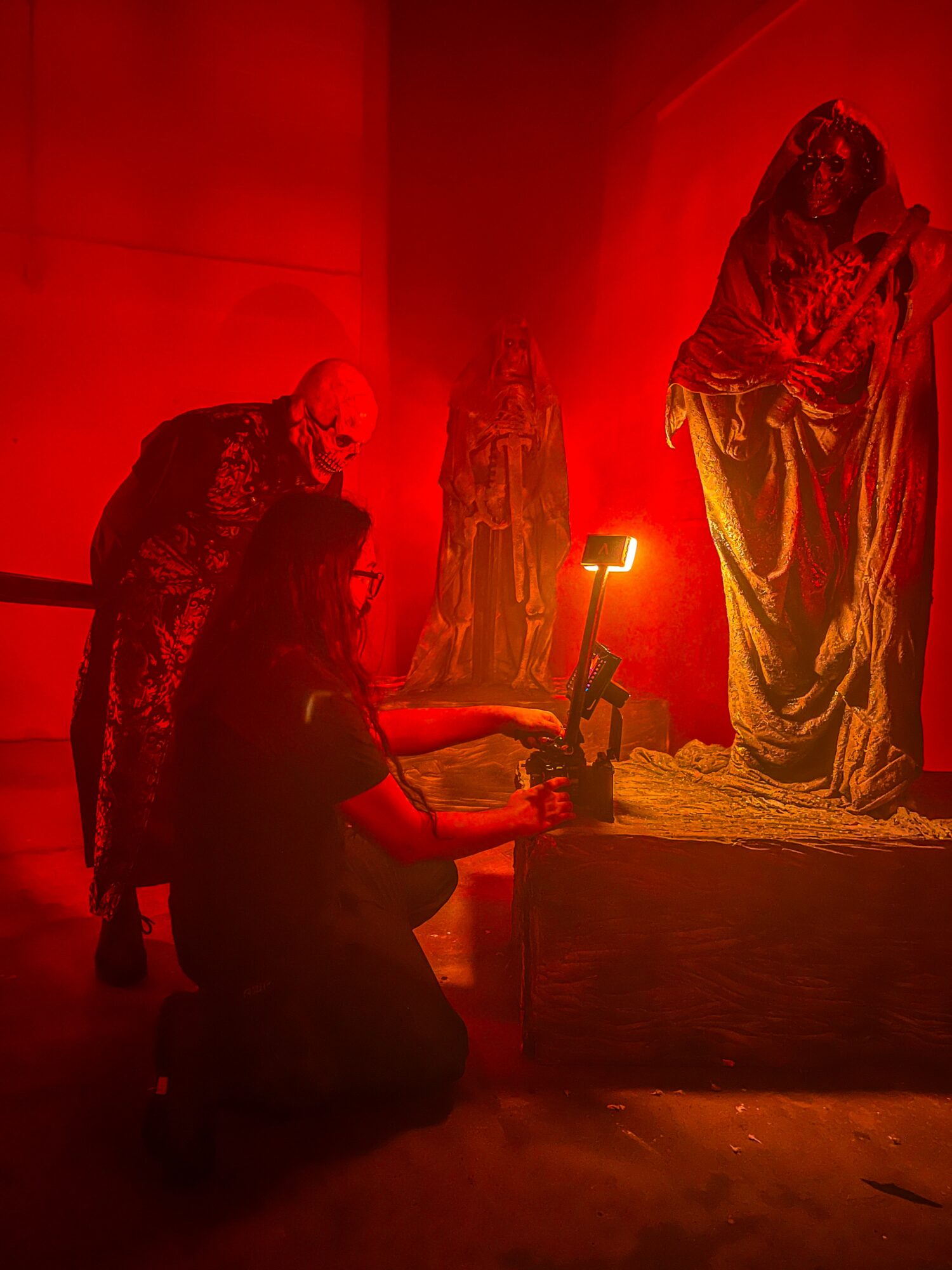 The visual media and music production side of Alcala Studios is managed by Ghoulio and operates under the same name. It focuses on cinematic filmmaking, photography, behind-the-scenes coverage, and music production. Just like with the sculptural side of things, we both have our hands in this process as well. We’ve supported haunted attractions and independent productions throughout the U.S., creating character-driven visuals, interviews, music videos, and promotional media with a strong cinematic style. The resources have not always been abundant, but the results are always mind-blowing.