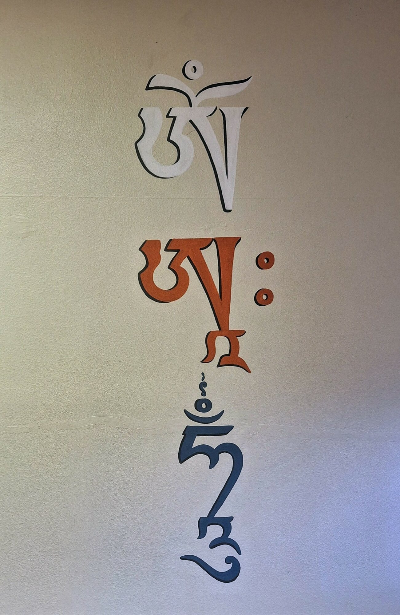 Megan Najera – Blue Flowers and Om Ah Hung wall painting.