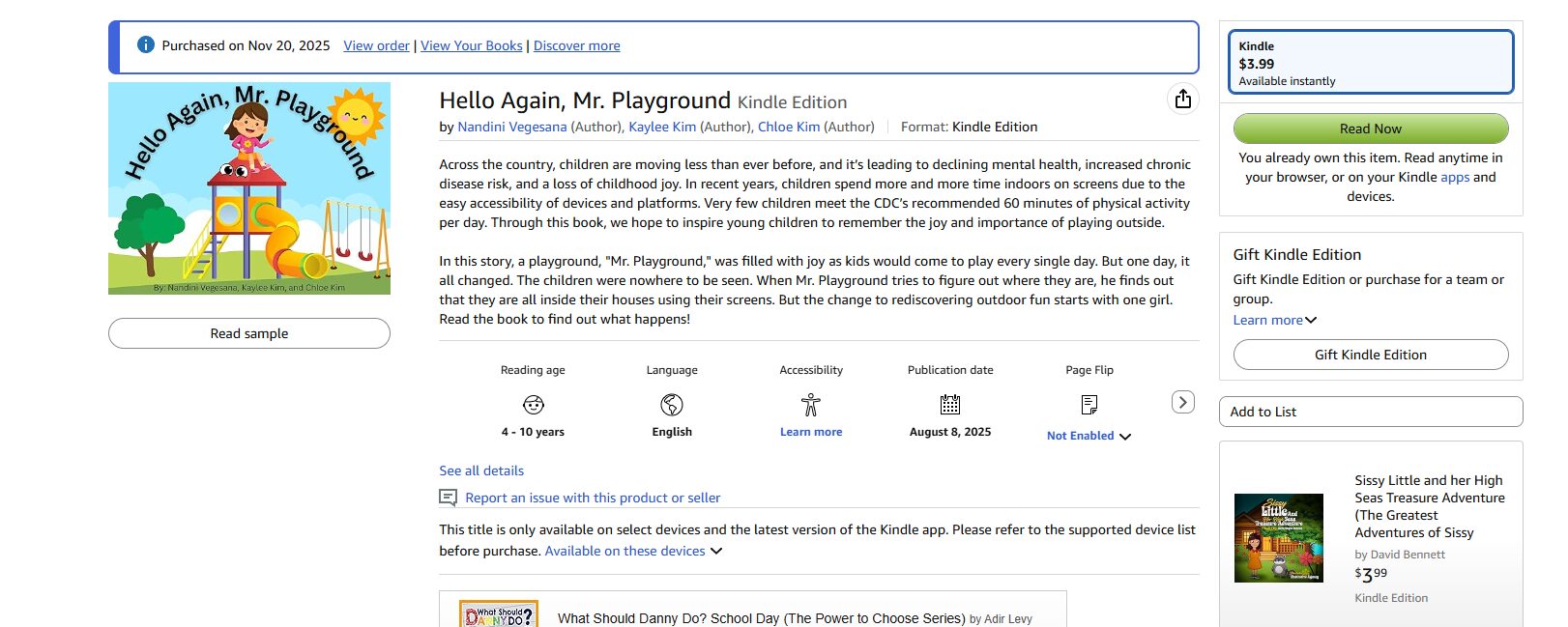 - Other: https://www.amazon.com/Hello-Again-Playground-Nandini-Vegesana-ebook/dp/B0FLRHZ7SF/