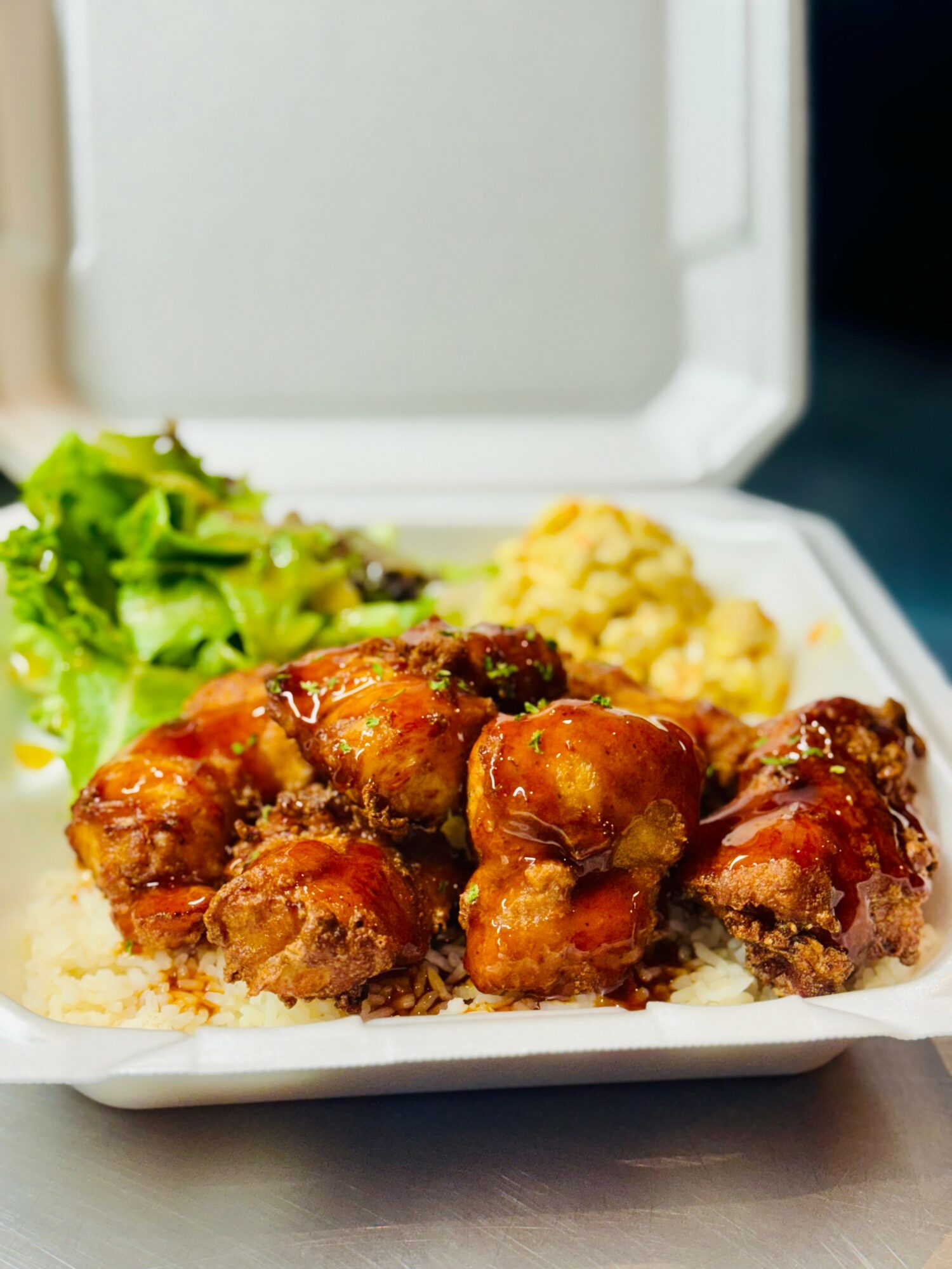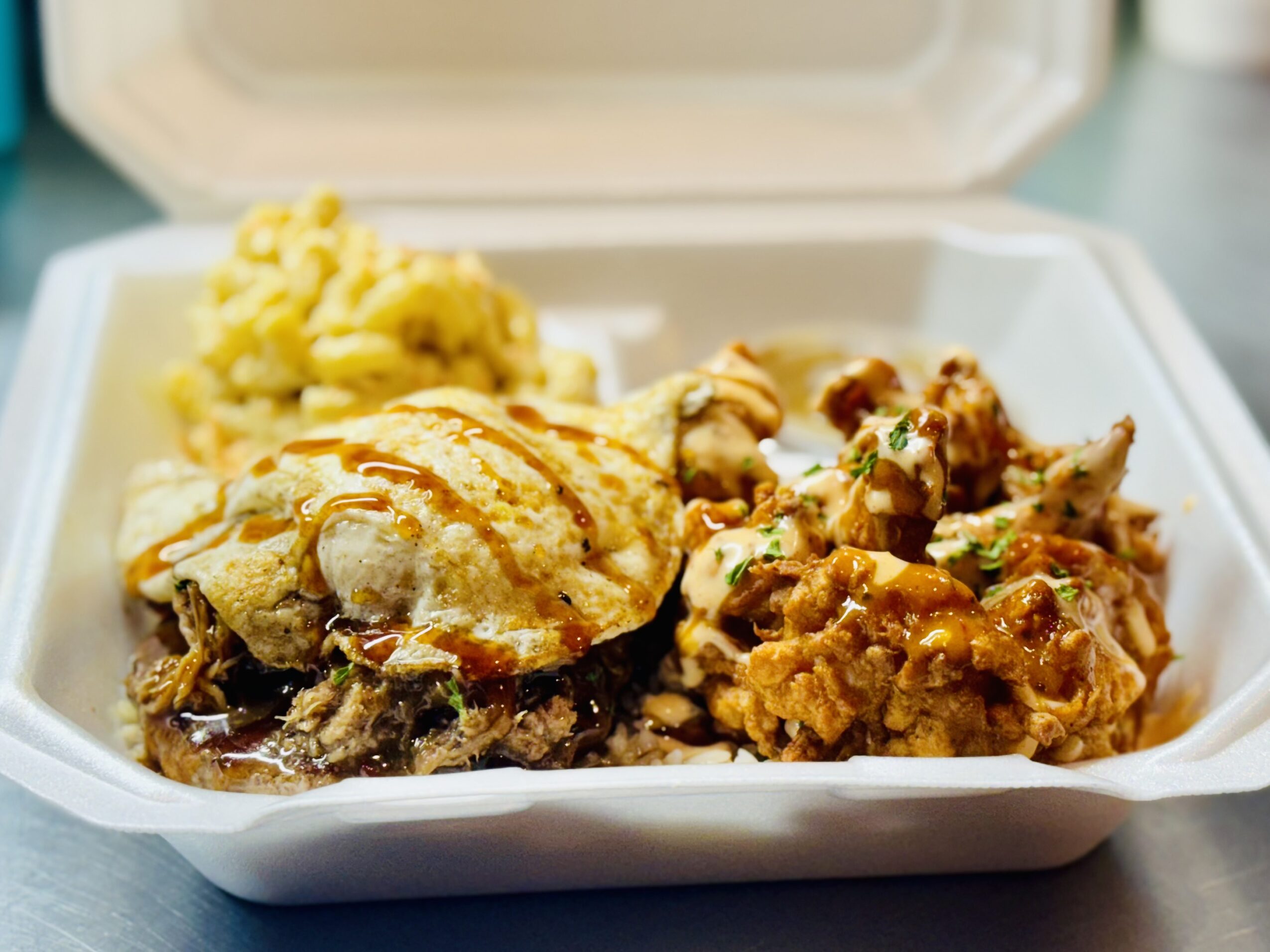 Our concept brings together two worlds — my foundation in French technique and my roots in Hawaiian comfort food. Every dish has a story. Many of our marinades and sauces come from my family — recipes passed down from my mom, my grandpa, and even my great-grandma. Our Hawaiian macaroni salad goes back generations. I’ve modernized some things, but the soul of it stays the same.