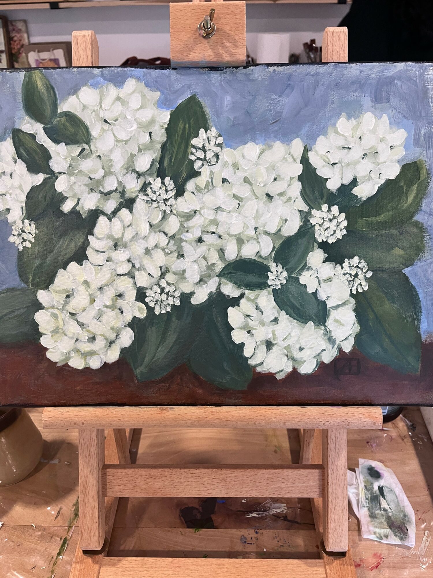 However, being a perfectionist, I found myself being dissatisfied with simply-shaped florals and geometric abstracts. I wanted to recreate the beauty that surrounded me. I wanted to capture the essence and details of florals while at the same time being unique and expressive. Needless to say, I put a lot of pressure on myself to become my own version of Van Gogh and O’Keeffe. Frustrations mounted as I turned to artist tutorials on YouTube and learning platforms. When my work didn’t ‘measure up’ to my expectations, I fell into the trap of impostor syndrome, harshly judging every little attempt at creating beautiful art.
