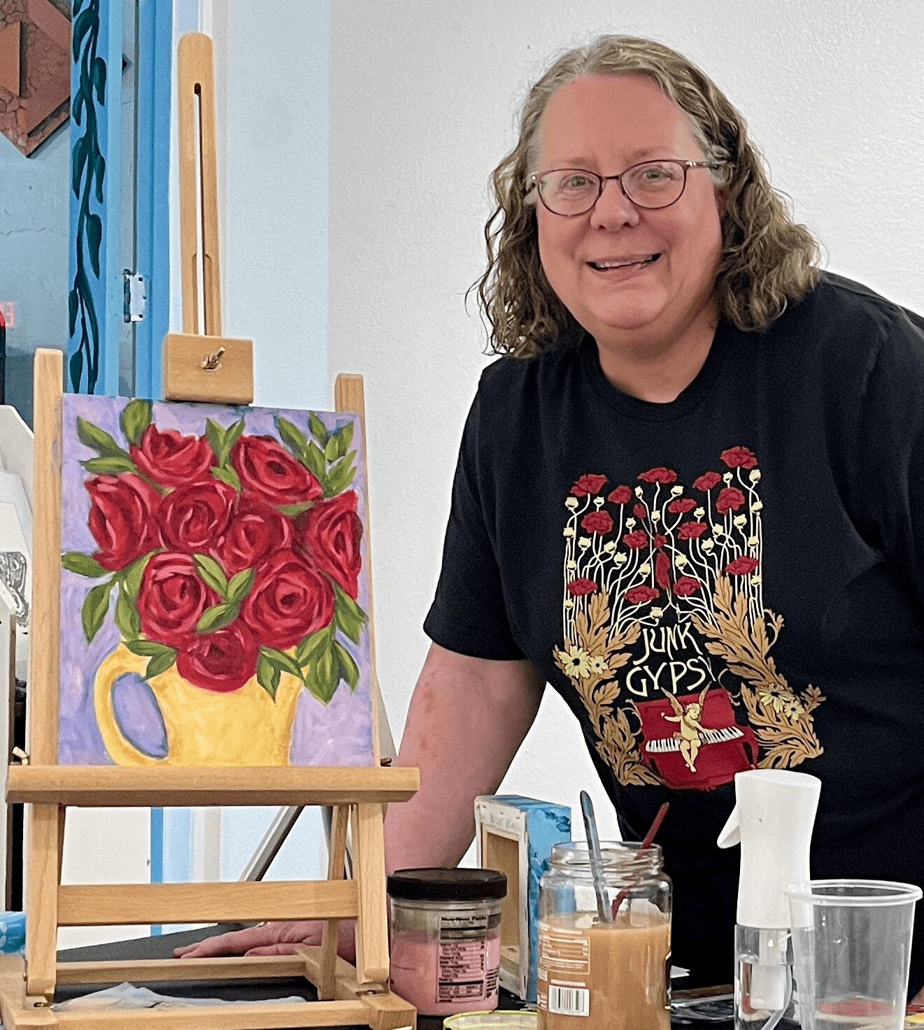 Currently, I enjoy painting florals and still-lifes in acrylics and watercolor. My husband and I live in a rural community on six acres of land. This allows me to observe nature and paint outdoors. In addition, I enjoy painting alongside fellow artists and giving and receiving encouragement that only community can provide. Because of that, my work is approachable, and the enlarged subjects give the viewer the feeling of being surrounded. I love to experiment with different techniques and color schemes, thus my work reflects my sense of adventure and taking risks.