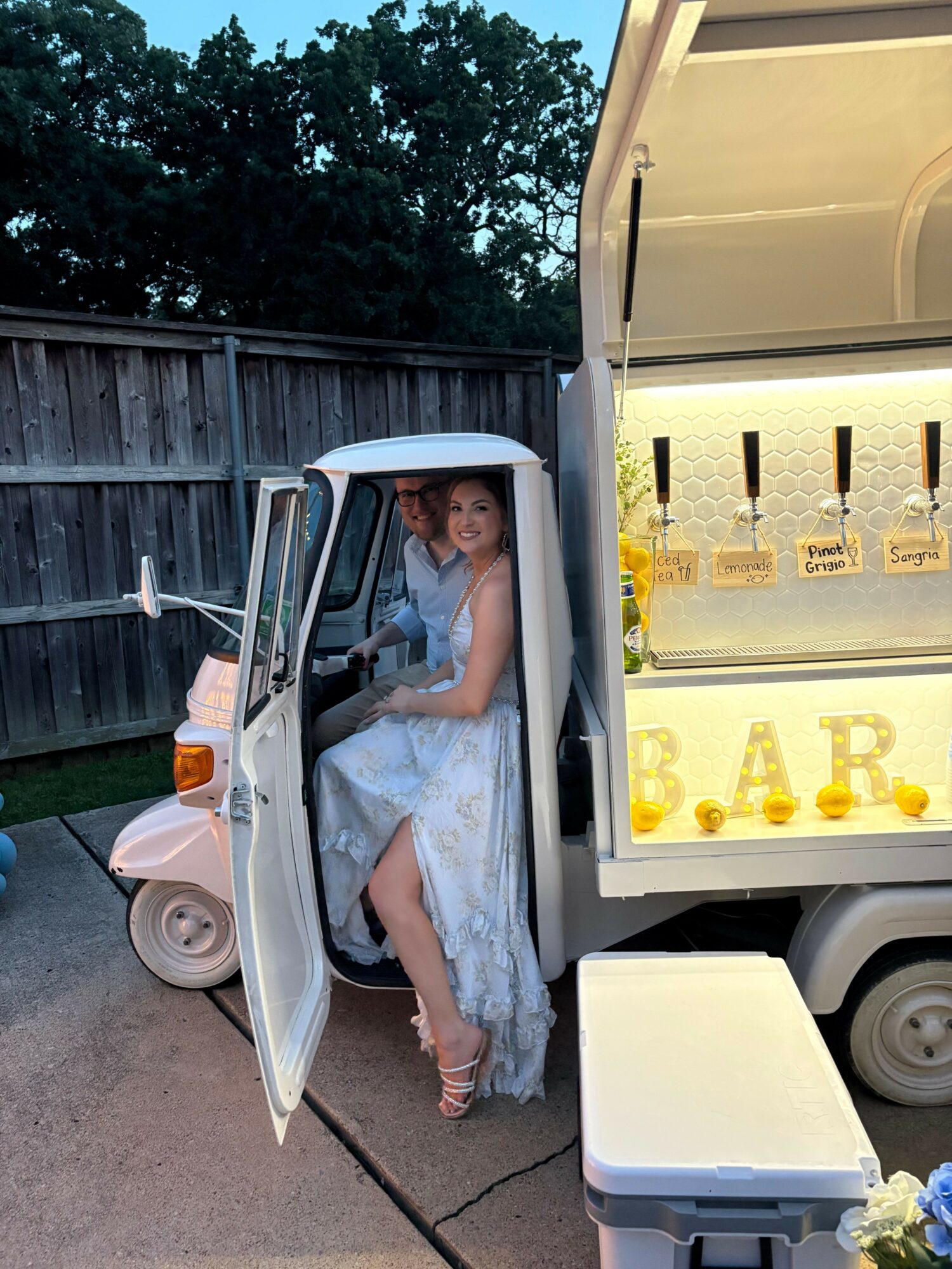 Fast-forward to 2023, when a social-media ad appeared showcasing a license opportunity for a mobile bar built from a converted Italian Piaggio Ape truck. My wife, already an established wedding and event florist, immediately saw how this could blend beautifully with her world of florals and celebrations. Together, we envisioned pairing her art of beauty with my passion for hospitality — a bar and floral experience that brings joy to life’s most meaningful moments.