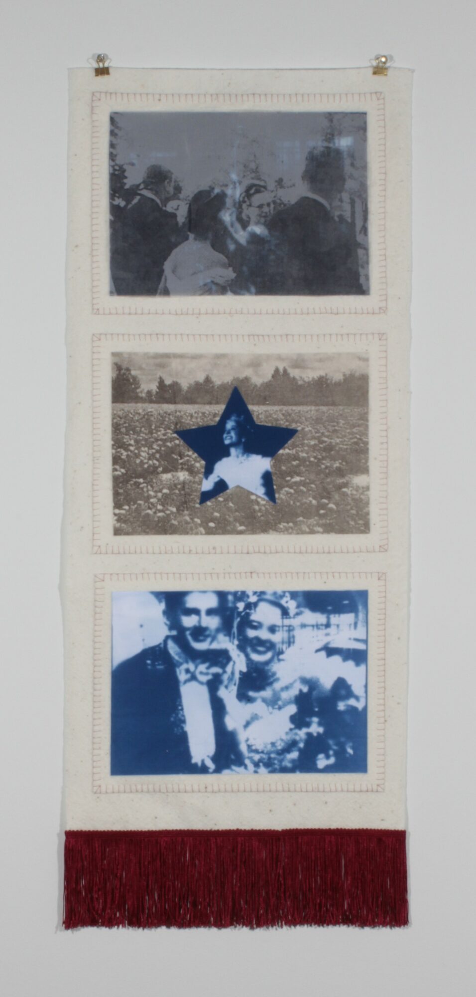 My artwork focuses on various themes and concepts, but I am really interested in materials and images, as well as their combinations. I work with various mediums, such as fibers, embroidery, printmaking, paper, and love collage as a process. I enjoy going out to antique/vintage shops and sifting through the imagery found in magazines and old family albums, letting the media inspire me. I currently am interested in my archive of found photographs and giving them new life through abstraction processes and using printmaking as a medium.