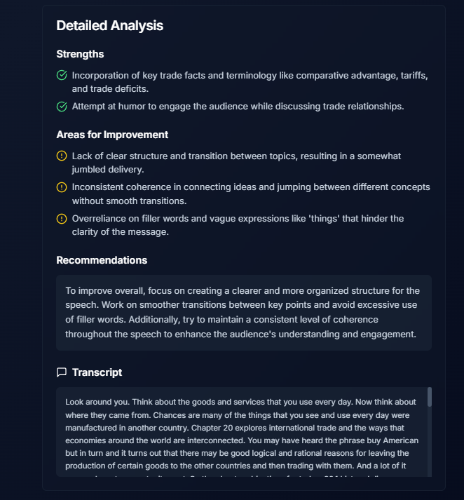 We knew it was worth pursuing for two reasons. First, we wanted to make sure nobody had to hold their opinions because they were scared of their style of speaking. Second, communication skills are universally valuable, whether for school, job interviews, or everyday confidence. If we could build something that made practice easy, fun, and accessible, people would most definitely use it.