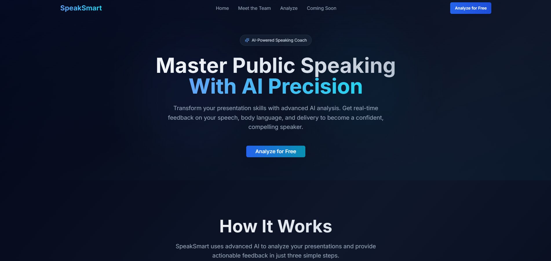 SpeakSmart provides AI-powered practice and personalized feedback where users can upload a video of their speech/presentation. Unlike other platforms, we focus on accessibility and inclusivity: it’s free to use, and we’ve worked with speech pathologists to make sure the feedback is filled with proven techniques. Our goal is simple. We want to help people of all ages to speak with clarity and confidence.
