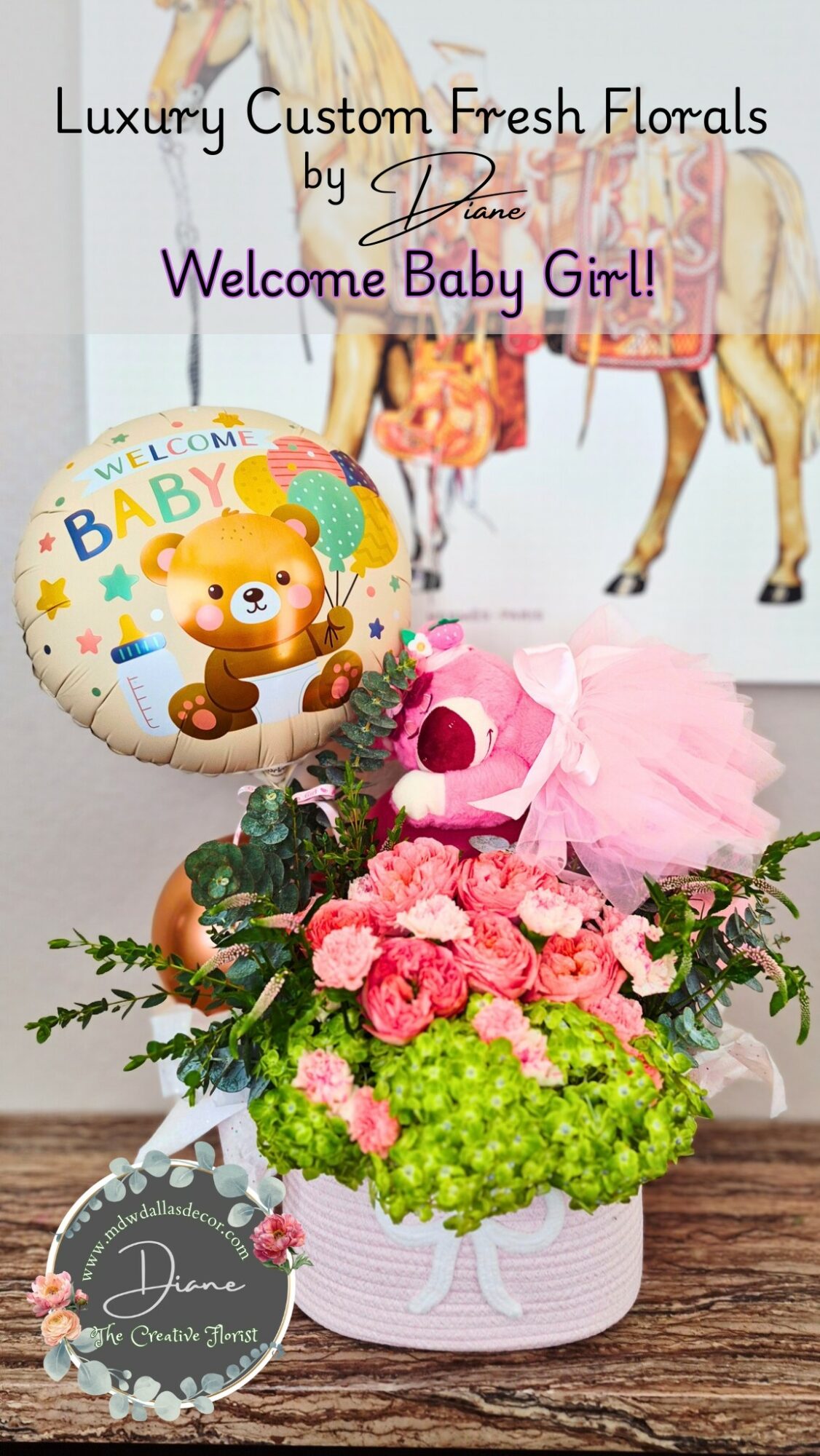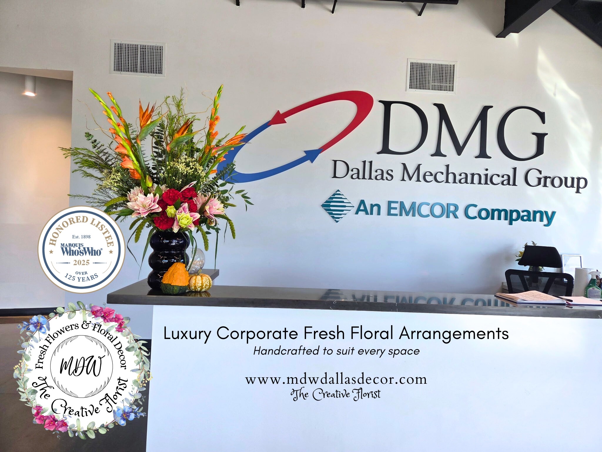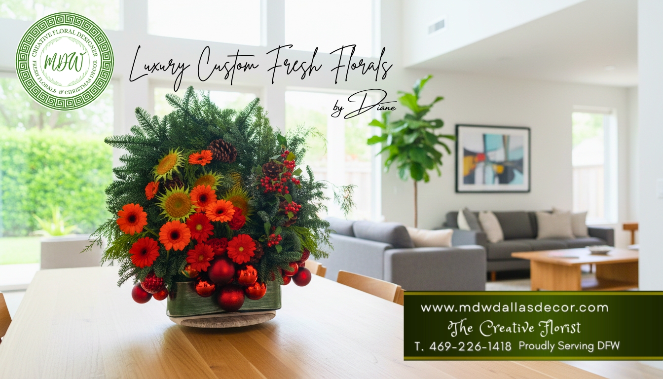 I was always crafting, and I loved to decorate for Christmas as a child. I worked as a seasonal decorator for one of the well-known interior decorator companies in Dallas. I saw how shallow exclusivity and custom decorating were with companies catering to a large volume of customers, so after that year’s Christmas, I decided to start my Christmas decor business, which really focuses on providing the utmost exclusivity and sense of custom design to every client. I had a few good leads, but Christmas was definitely seasonal, so I decided to enter the fresh flower arrangement industry as my all-year-round business with the addition of seasonal decor such as Easter, Thanksgiving, Christmas, and even Valentine’s Day.