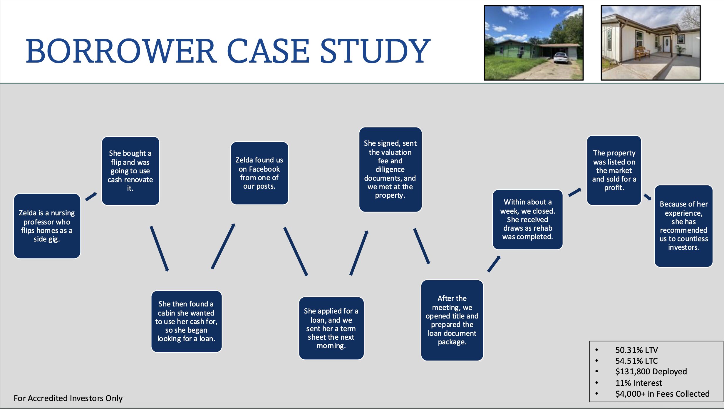 I graduated film school from UCLA in 2016 and started working on the finance side of the industry, investing in independent film through various debt instruments. With my immediate family growing in the DFW metroplex, I knew my time in Los Angeles was coming to a close. While working remote in DFW for the same firm, my brother and I started flipping homes. We “learned on the job” as they say, getting some wins under our belt and also gaining valuable investment experience. Halfway through 2022, the interest rate environment changed drastically, and around that time I officially left my job in LA. Serendipitously, an old childhood friend of my brother’s was interested in getting into hard money lending after flipping homes himself. Using some startup capital, our combined experience flipping, and my experience in private credit in the media & entertainment space, we started lending, and the business quickly took off. We launched the fund in February of 2024 and have steadily grown since. We’ve positioned ourselves as a local, boutique lender with excellent servicing and flipping know-how.