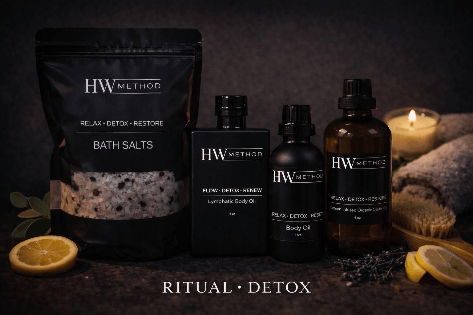Brand-wise, I am deeply proud of the identity we have cultivated. HW Method embodies “Relax • Detox • Restore.” It is elevated yet grounded. Luxurious yet functional. Results-driven yet nurturing. We have expanded into a carefully curated product line of lymphatic oils, castor oil formulations, detoxifying bath salts, dry brushes, and sculpting tools so that care does not stop at the studio door. The brand extends into ritual, into daily intention, into lifestyle.