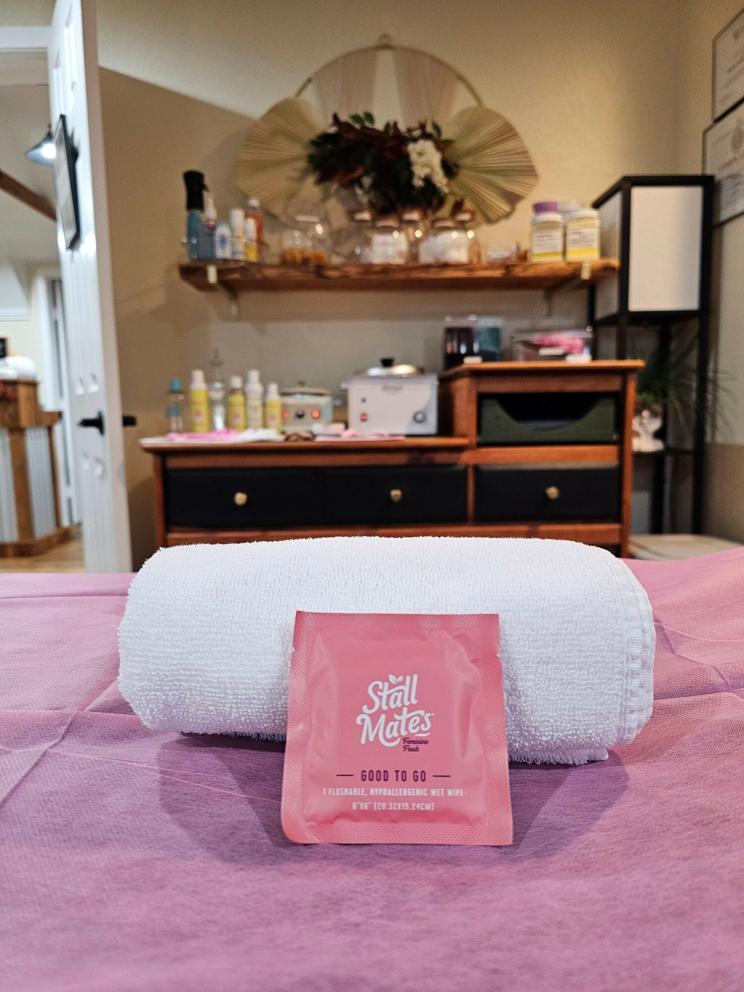 I pride myself on being approachable and down-to-earth, always ready with a joke, a hug if its needed, or a listening ear. I affectionately refer to myself as a ‘crunchy mom,’ embracing both the put-together moments and the more relaxed or messy ones. Comfort is key for me, whether I’m on the go or welcoming clients into my spa. And I encourage that from my clients as well.