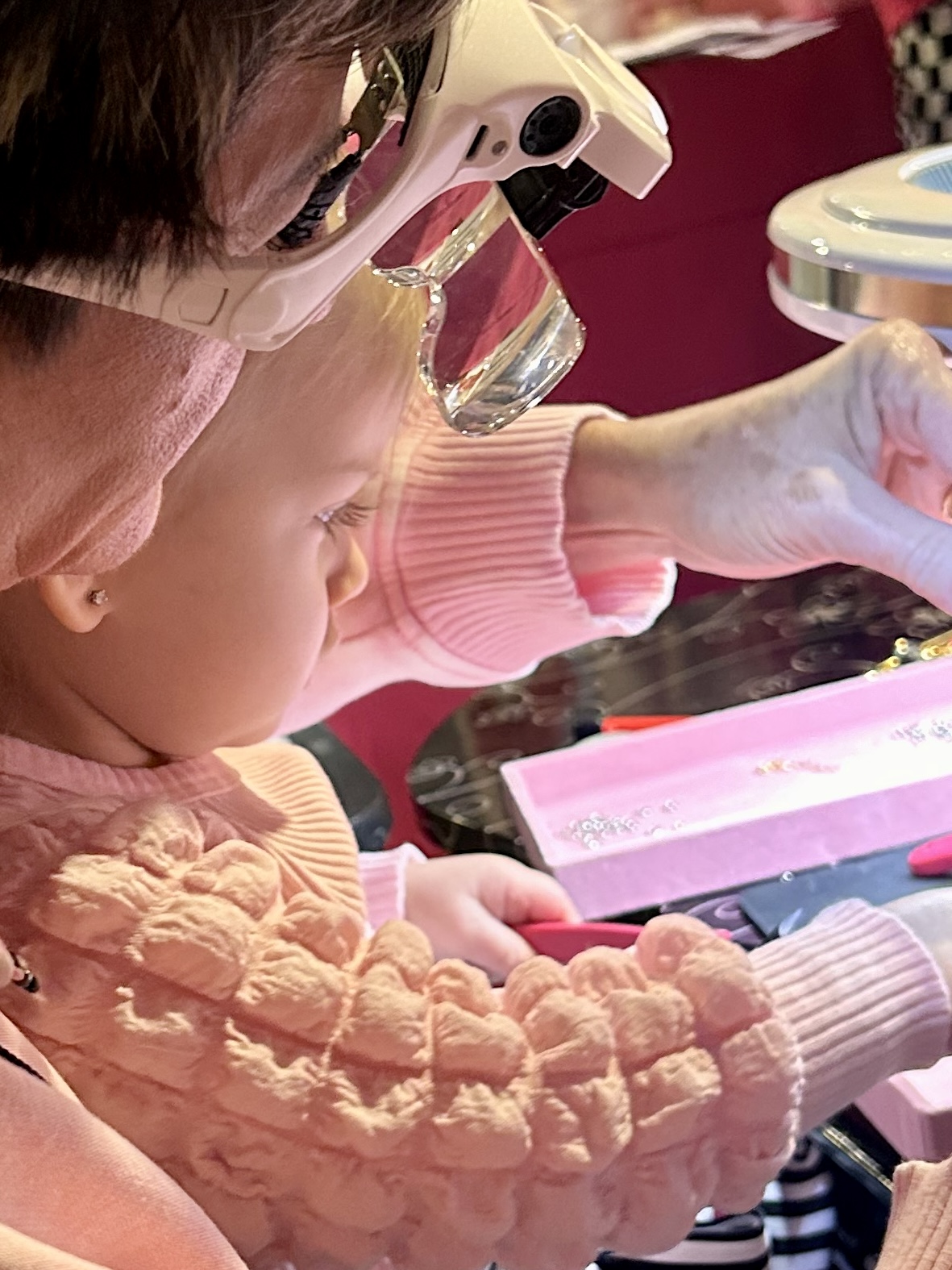 I practiced welding on family and friends for a couple of weeks before hosting my “grand opening” at Sweet Darlin. It was a huge success, though stressful at the time! Since then, Rebbekah and I have attended vendor events, hosted parties, and collaborated with employers gifting jewelry to their teams. Our relationship has grown stronger through the business, and we’ve loved meeting new people and traveling to new places.