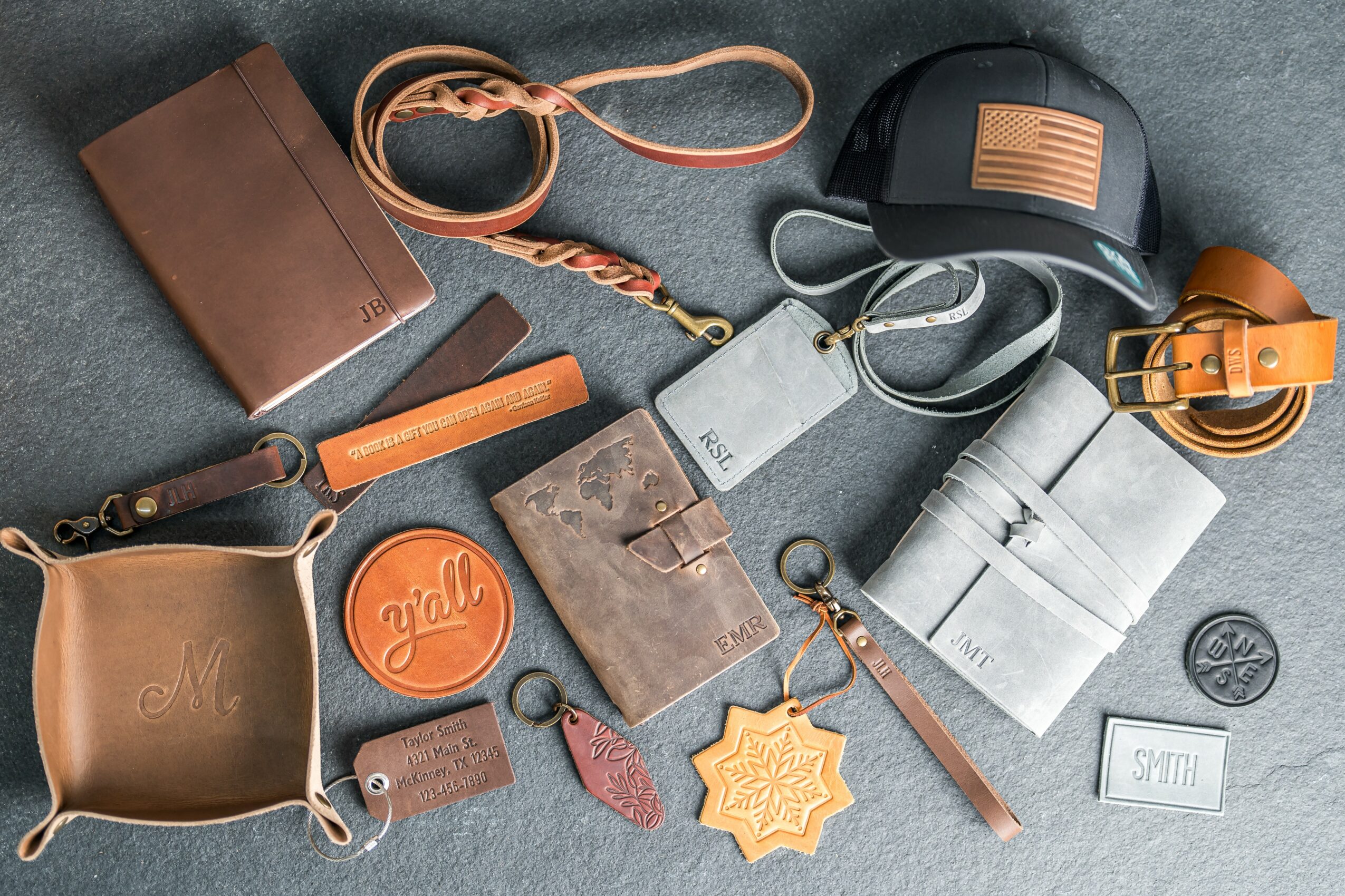 Ox & Pine creates handcrafted leather goods made in the USA, combining timeless design with personalized touches. From custom journals, keychains, and luggage tags to corporate gifts and branded swag, each piece is carefully crafted by skilled artisans using premium full-grain leather.