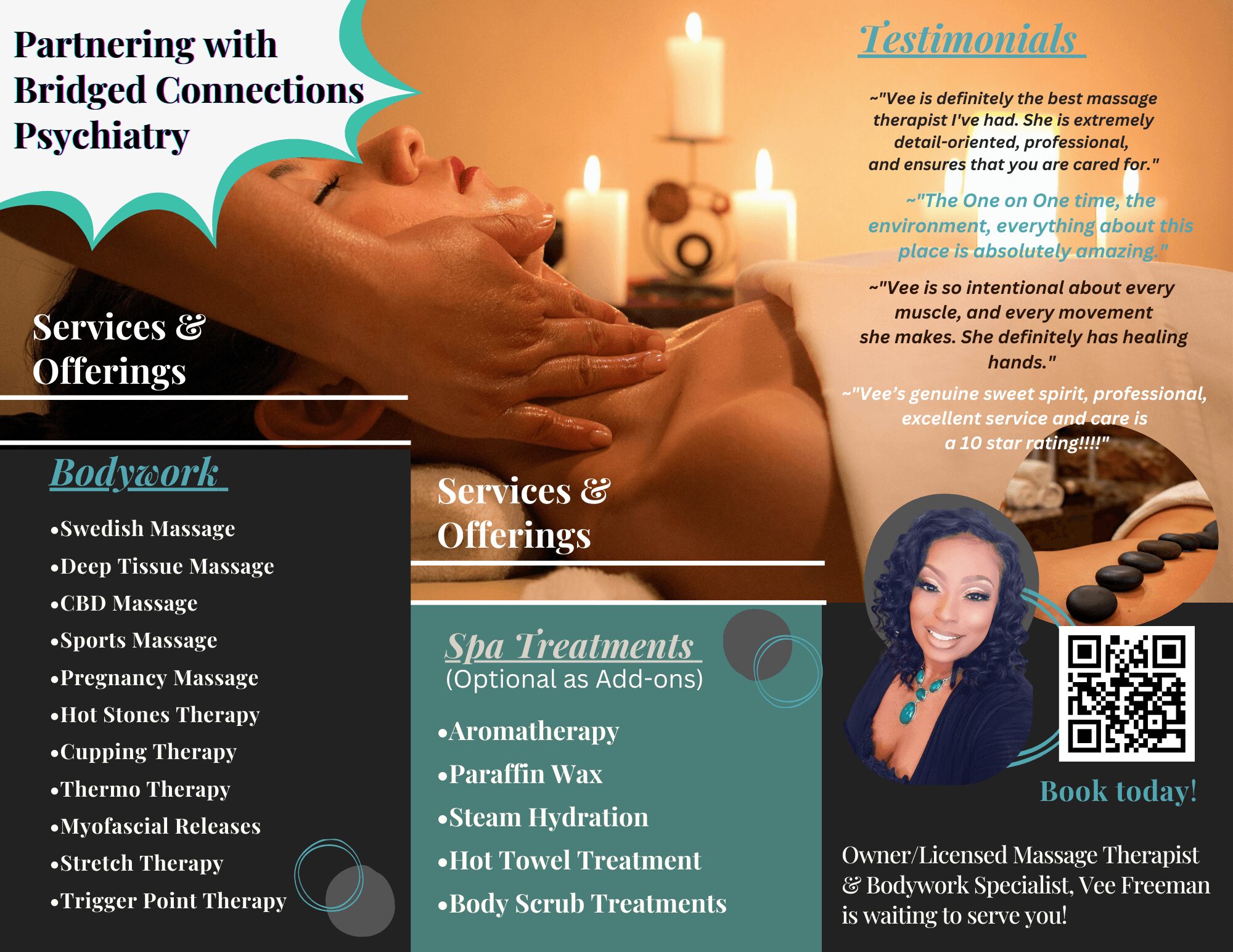 What sets my brand apart is the belief that perinatal mental health is generational work. When we support parents during pregnancy and postpartum, we’re not just treating symptoms in one person—we’re reducing the burden of trauma, strengthening attachment, and changing the trajectory for the children and families who come after them. My goal is for Bridged Connections Psychiatry and Nurtured Hope Wellness to feel like exactly what the names suggest: a bridge between where you are and where you want to be, and a place where your story is held with both science and deep compassion.