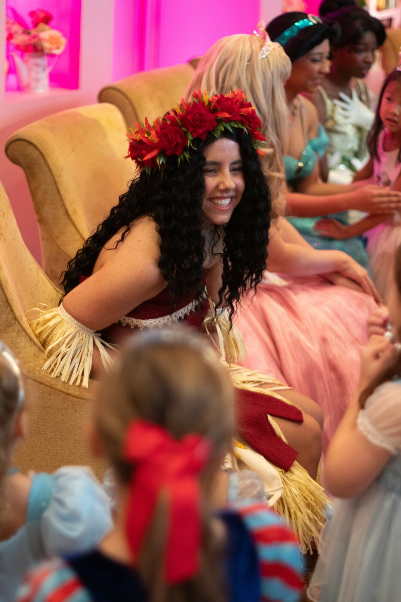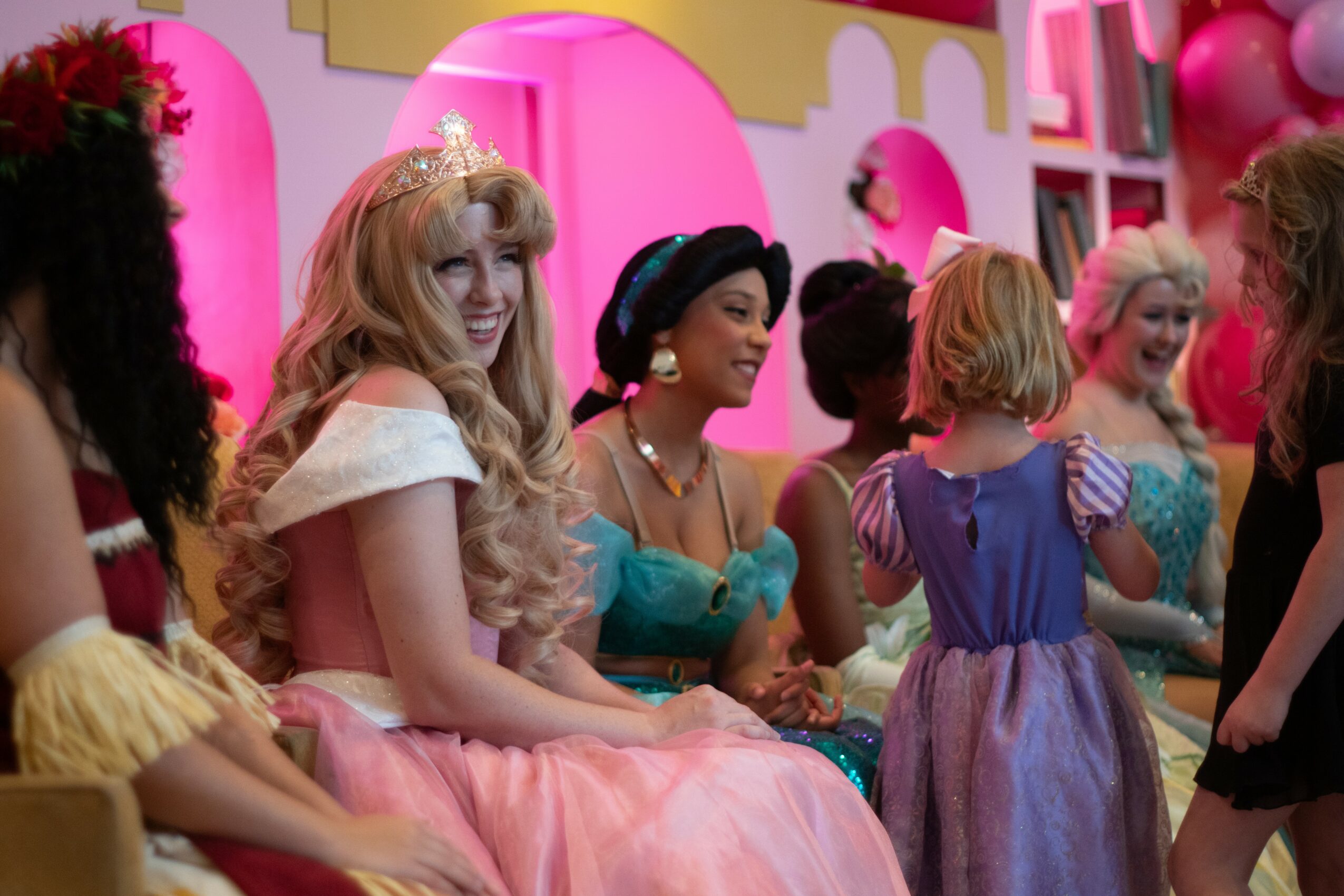 We specialize in character entertainment for children’s parties, corporate events, and public appearances. We do everything from classic Meet & Greets with guests, to vocal performances for whole audiences, and, of course, our birthday Party Programs that are intended to keep kids entertained and let the parent’s relax. Our standout features are the character integrity of our performers and our one-of-a-kind luxury costumes (we are building a lineup of THE prettiest princesses in DFW). Anyone can put on a costume and wig and pretend to be someone they’re not – and don’t get me wrong, kids will still believe them. But our goal is to blow those kids AND adults away with a real-life princess. I don’t think it’s your job to suspend disbelief and go along with the gag; I think it’s our job to make the experience so immersively magical that you actually can believe for a little while. We take everything into account – character movement, vocabulary, story points, height and facial features, how certain fabrics photograph, the right pair of earrings, the ‘swooshiness’ of a skirt, shoes and contacts, etc. I haven’t seen another company in the metroplex that pursues that to the fullest. I think people tend to hit a boundary in one area or another and decide they are satisfied with the current result, so I’m proud of the attitude our company and brand has that nothing is too magical to attain – it’s just a matter of finding a way to get there.