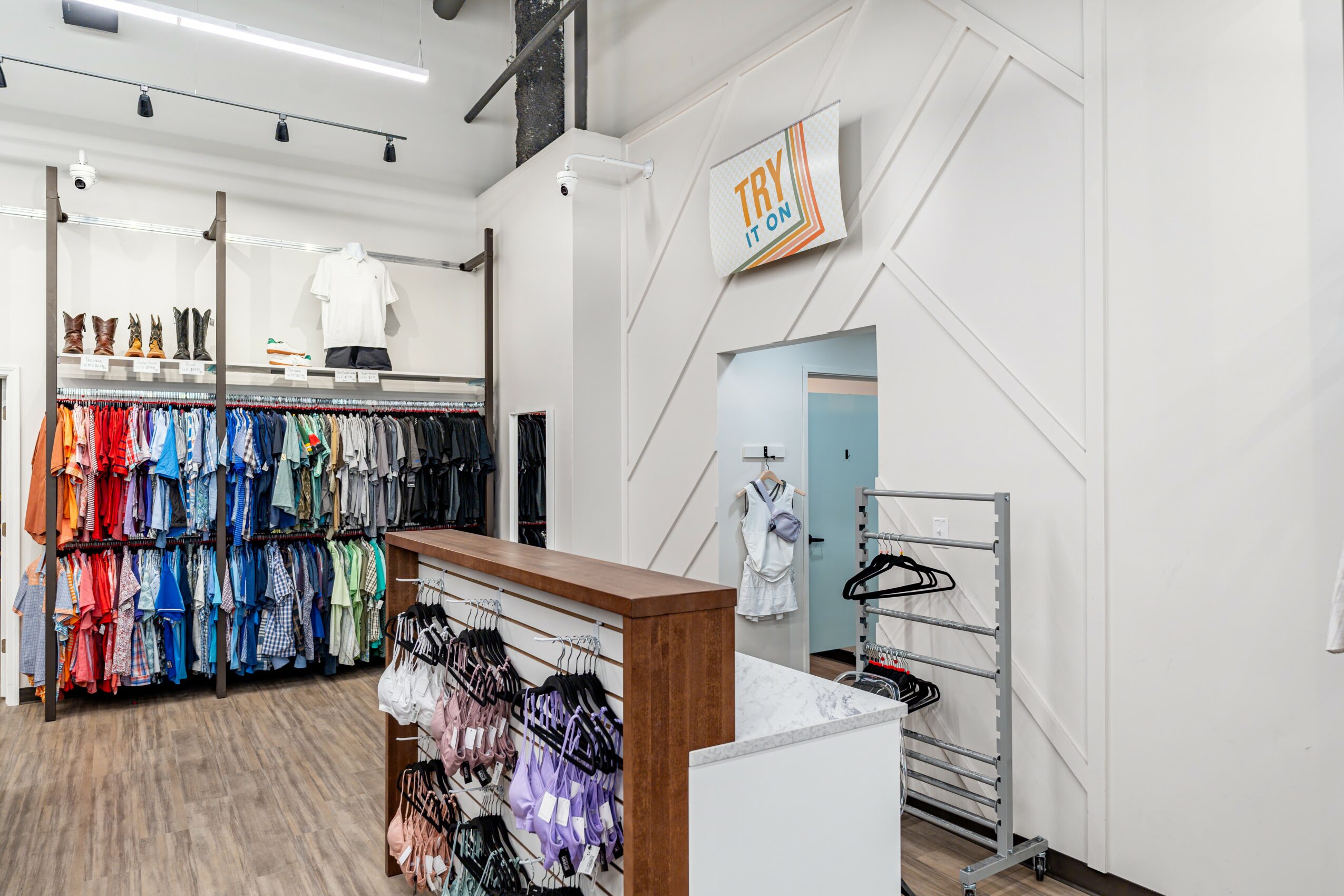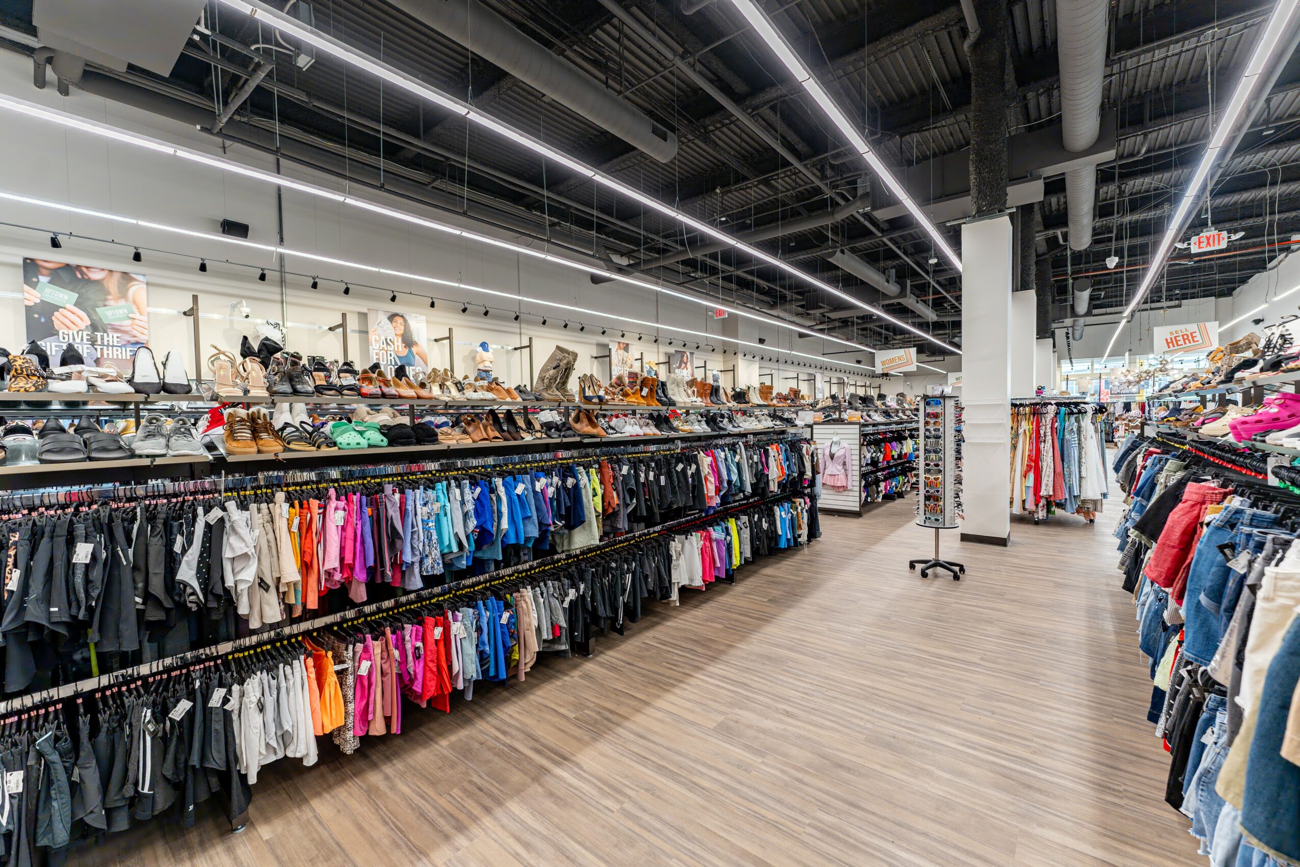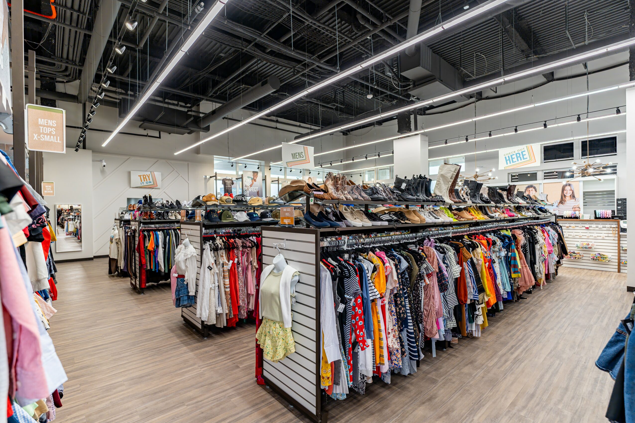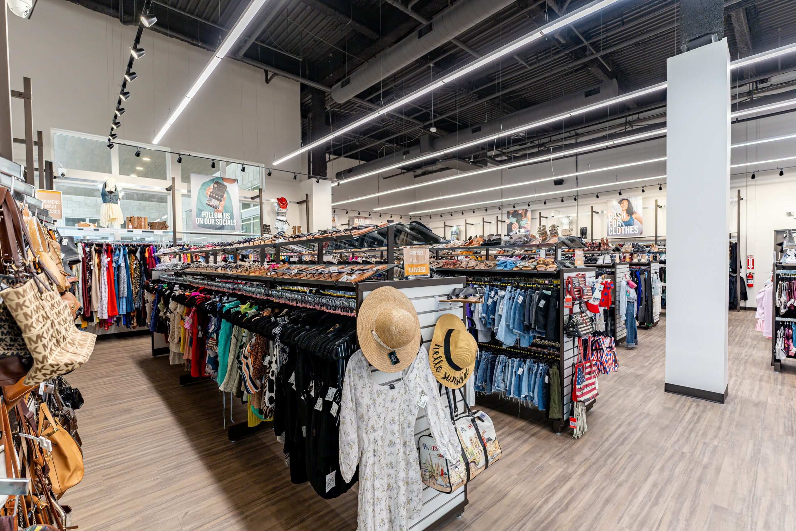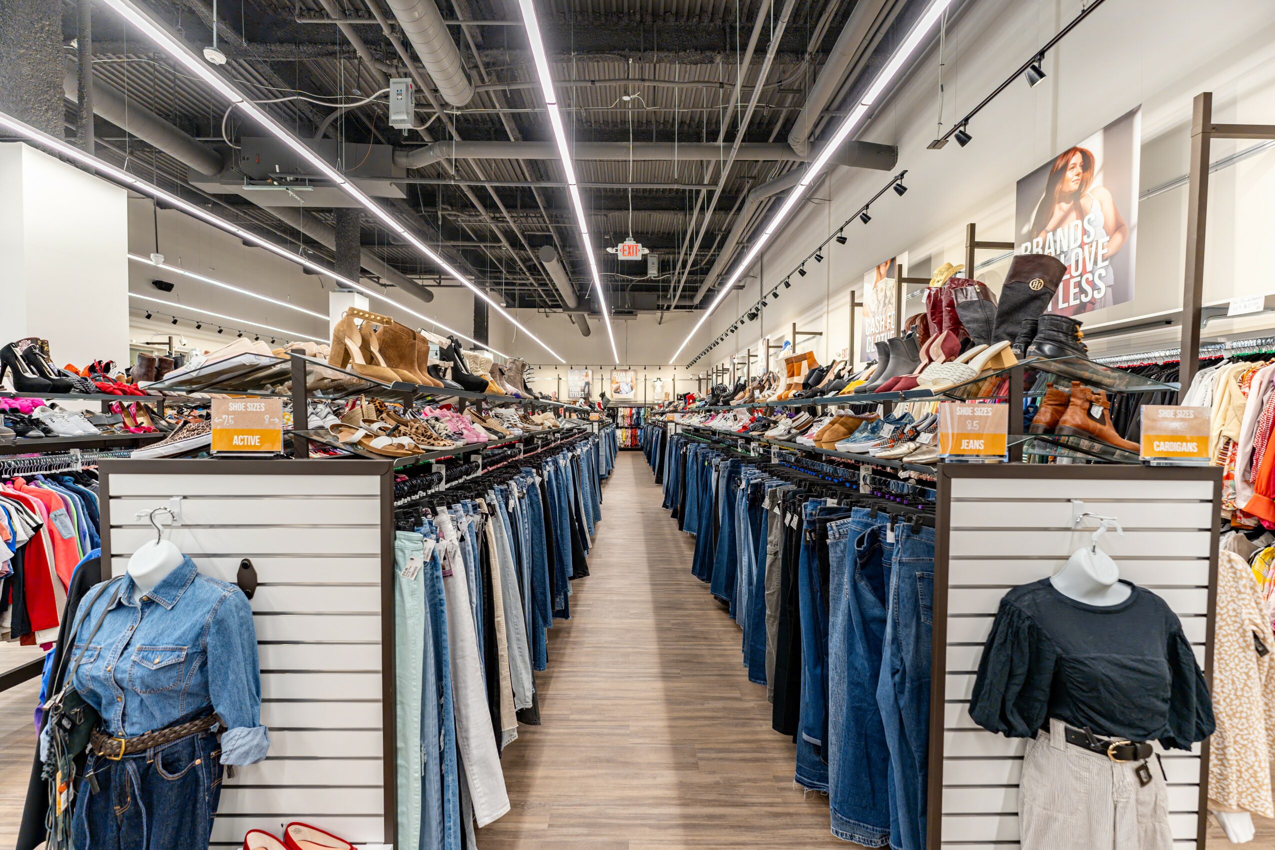 We buy the clothes, shoes, and accessories in the store from the community. That means the money we spend to purchase our inventory is spent with local people right in the local area. Through our Cash For Clothes program you can bring in your clothes, our team will assess them while you shop, and then we will give you an offer on the spot for cash or store credit.