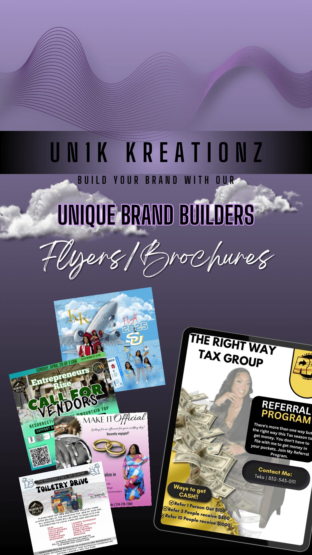 I am most proud of my Brand Bundles. They are set up to help other business owners whether they are just starting out or have already started but it wasn’t the best, it just got them by. It gives them the ability to upgrade their current website or just create one without breaking the bank. It helps them to market themselves by bundling business cards, mini postcards, banners and signs for a fraction of the c0st.