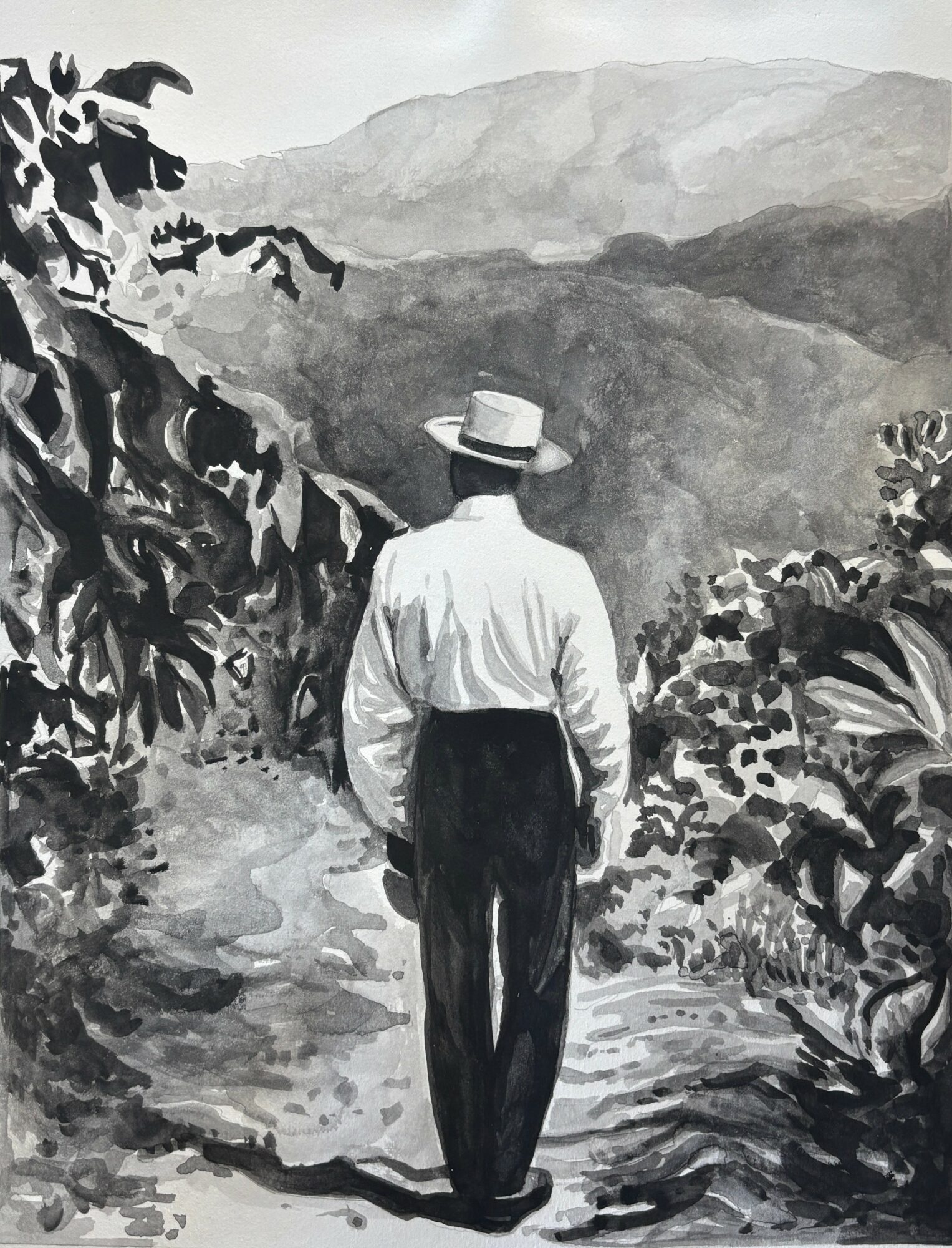 My multidisciplinary work, rooted in drawing, painting, and art installation, explores memory, place, and postcolonial identity.