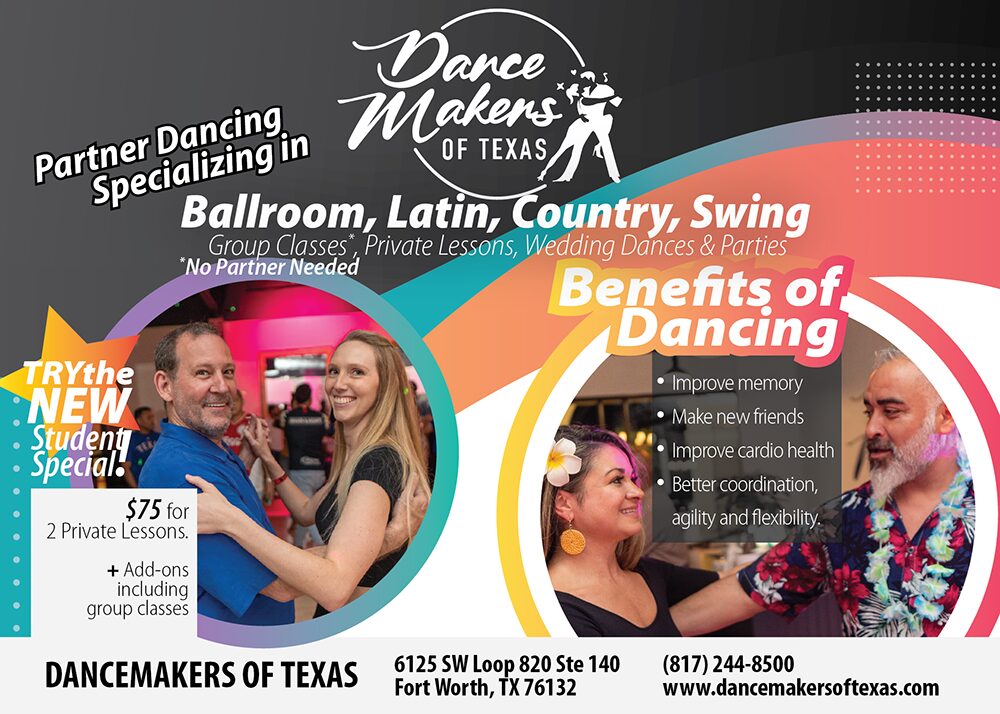 I’ve always loved dance. My first passion was hip-hop as a young girl. But at 23, I discovered salsa, and it was a turning point, I fell in love with partner dancing. After my first professional class, I was hooked. Soon, I became a teacher with a nonprofit organization called Dancing Classrooms, using dance to teach social and emotional skills through the art of dance to 5th graders in FWISD. Then I met Julie, the owner of DanceMakers at that time, who invited me to join her studio as a teacher. I taught there for 13 years before taking over when she retired. For over four and a half years now, I’ve owned the DanceMakers of Texas and I am so grateful for its success. We teach ballroom, Latin, country, swing, and hip-hop. We offer private lessons, group classes, and parties at the studio, plus we teach at outside events like weddings and downtown at Sundance Square, as well as other venues like Chicken N Pickle. Dance came into my life at a time when I needed it most, during a divorce, and now I’m so grateful to share that healing gift with everyone who walks through my doors.