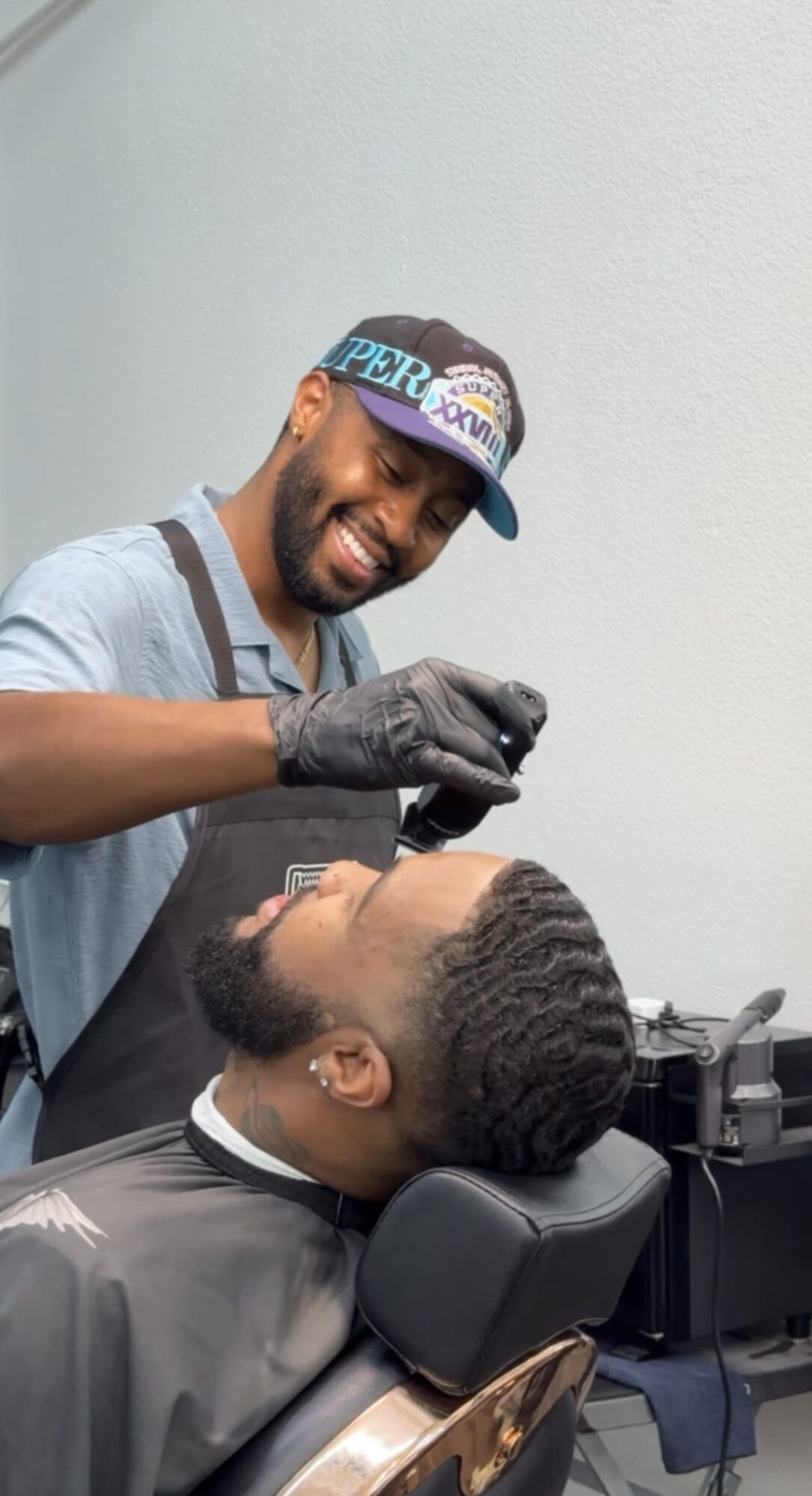 Barber school while working and supporting my family was humbling. I was older than most people in the class. I had real bills, real responsibilities, and a standard I refused to fall below. There were also the quiet moments where I questioned whether starting over in a new career made sense. But every single time I sat someone in my chair, I was reminded why I’m doing this. I also realized the power of social media in my field right away. People laughed at me, or looked at my sideways when I put up a camera. I even turned down a chair at a good shop because they didn’t really prioritize content creation. Content creation is sometimes seen as a fad and not necessarily the missing piece to barbering. Being a content creator was honestly the hard part of becoming a barber for me. After a long day I had to learn how to juggle making content and also making content that was authentic to me and not just remaking something that already existed. I had to find my own lane in barbering and in content creation and that journey took a little while but Im finally in a good spot. So to answer your question, faith, discipline, and the support of my people kept me going. That’s what got me here.