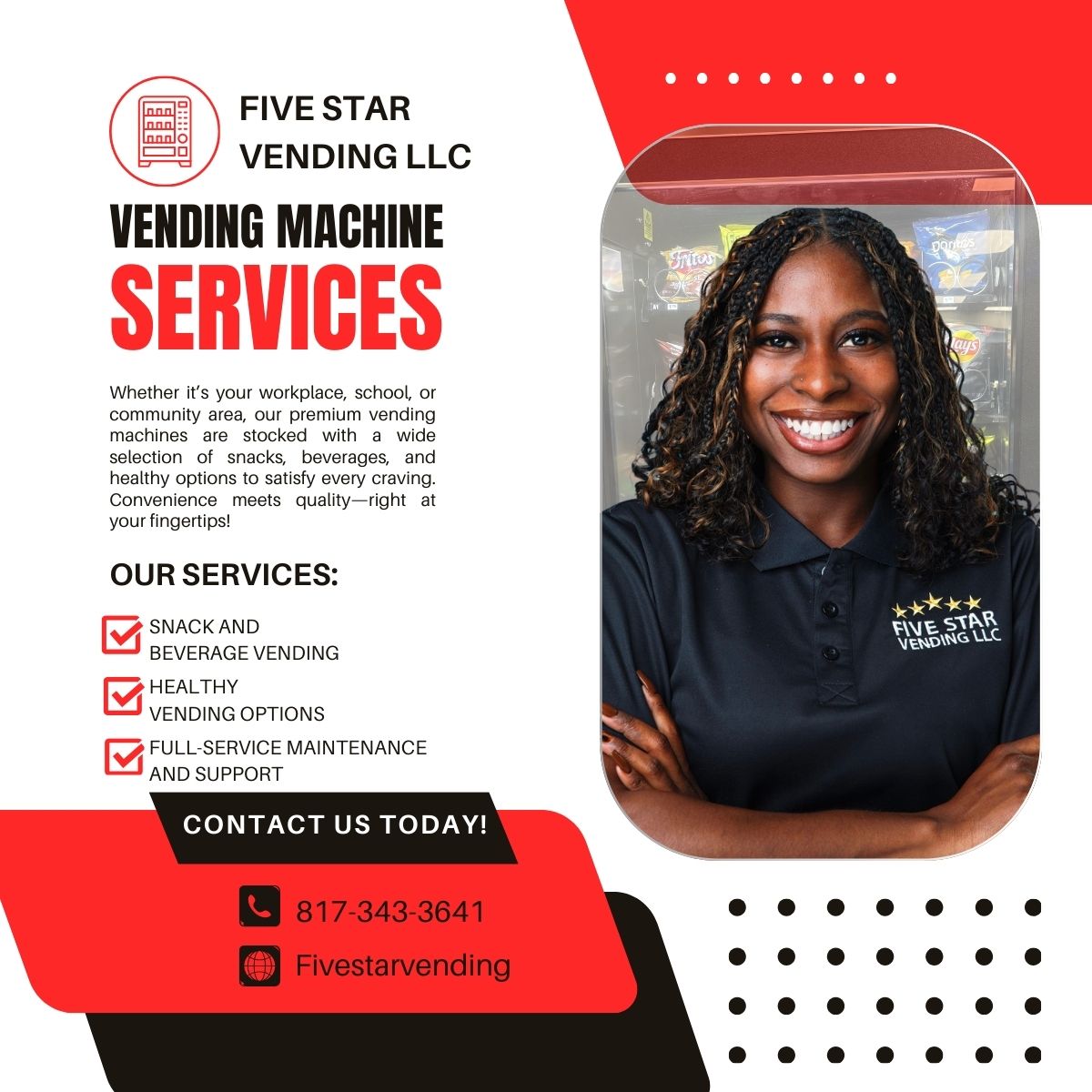 - Facebook: https://www.facebook.com/p/Five-Star-Vending-LLC-61561921786138/