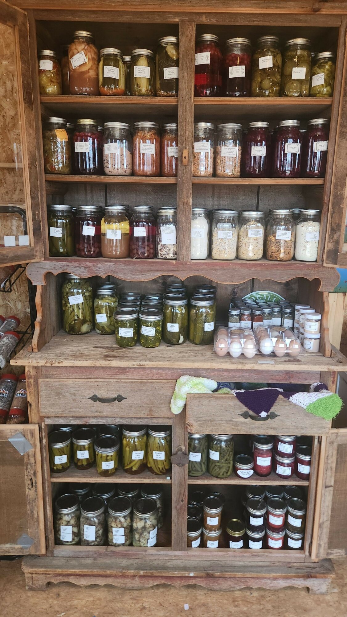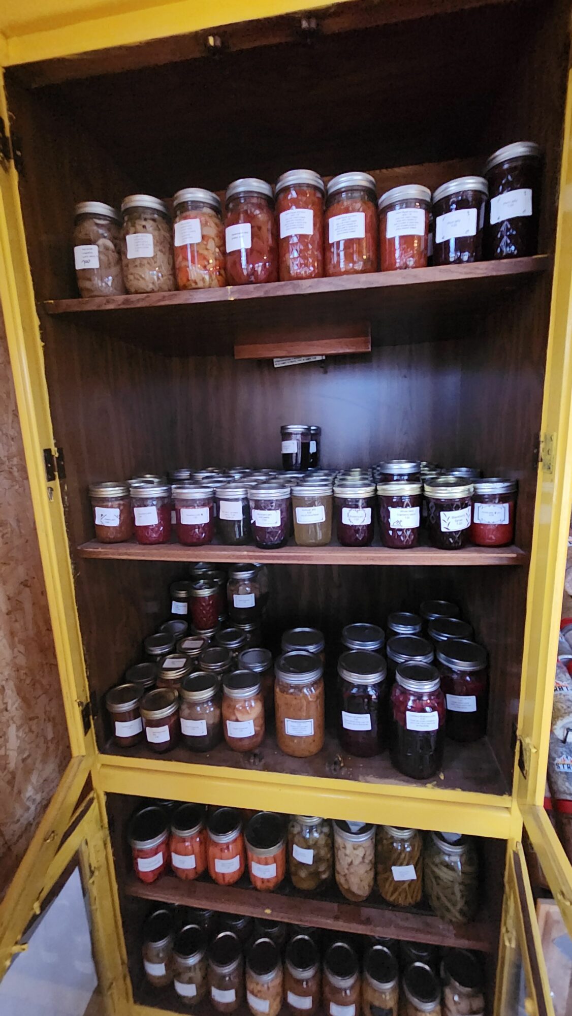 Grew up gardening and Canning with my grandparents. Joined the marine corps at 18 and managed a restaurant off and on for twenty years raised my child always have had a garden. Got remarried at 38 years old after a 17 year marriage ended and started farming with my husband. Began canning and preserving foods and dehydrating herbs. My friends would always ask for jellies or pickles and that turned into me selling some items I canned. I put a Yellow Cupboard on my porch and began posting the items on my Facebook page and so began my business! It grew into a small room on my porch and now a 10×20 building! I am teaching women how to can and preserve and grow their food.