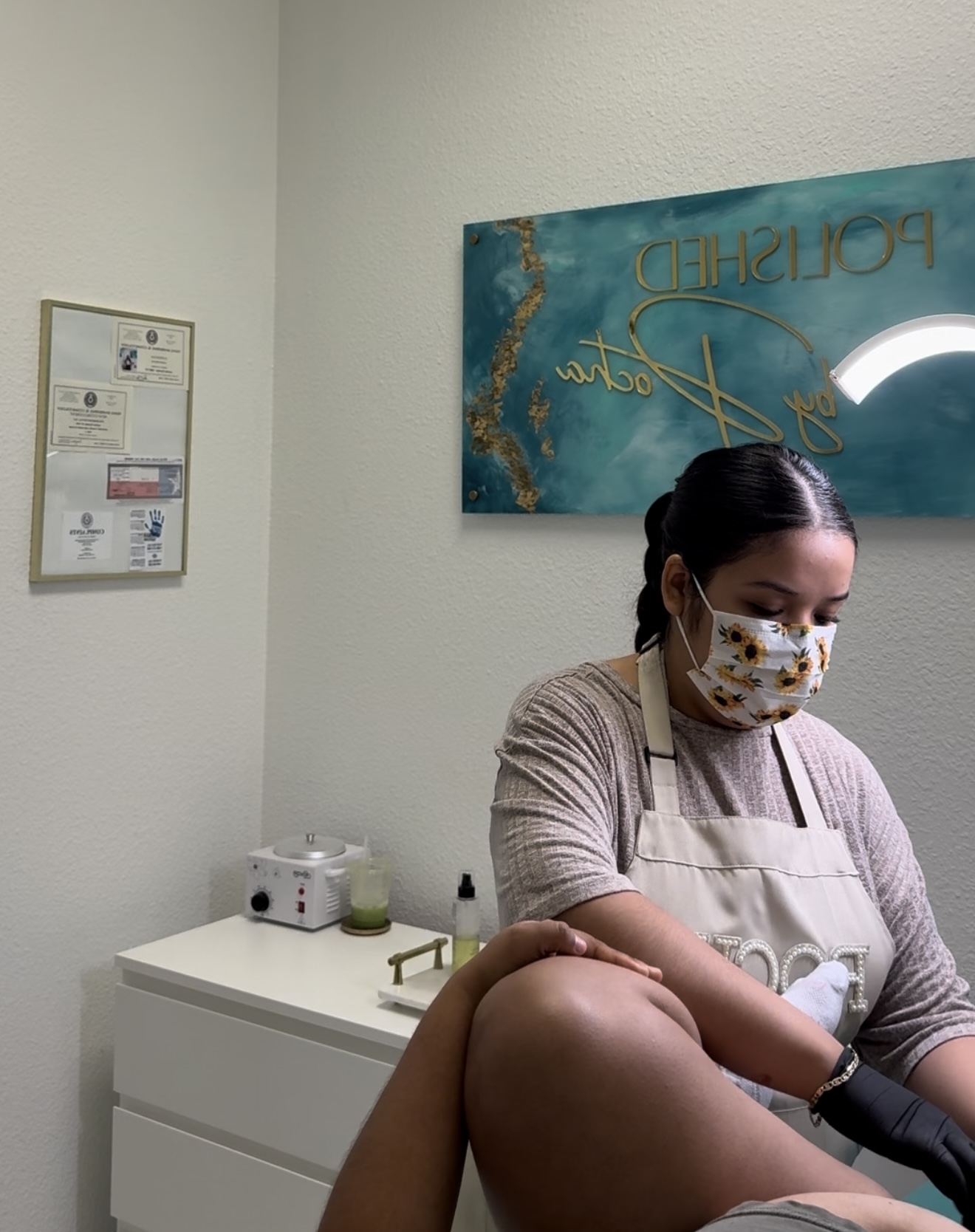 I started my waxing business in 2021 at only 18 years old. I was always sure about waxing. When I enrolled in esthetician school, I knew exactly what I wanted to do, so as soon as I got the chance, I started. Just me and my clients in a spare bedroom at my family home, a huge shoutout to my parents because without them giving me the confidence to start from home I wouldn’t be where I am today. I remember my clients had to walk through the laundry room and kitchen to get to my waxing room, my back bar was a mini party table with fake marble paper over it, and my first wax pot was a little one that came in a $70 waxing kit that “had everything I needed to start.” I remember being so excited when it got delivered because I was a step closer to being able to wax my own clients! Even though I started in a bedroom and not under the best conditions, I felt like I was the hottest waxer in town. I was seeing maybe 10-13 clients a week, my parents couldn’t believe Brazilian waxing could actually be a career, and I was so happy to show them it could! Little did they know, it was only the start.