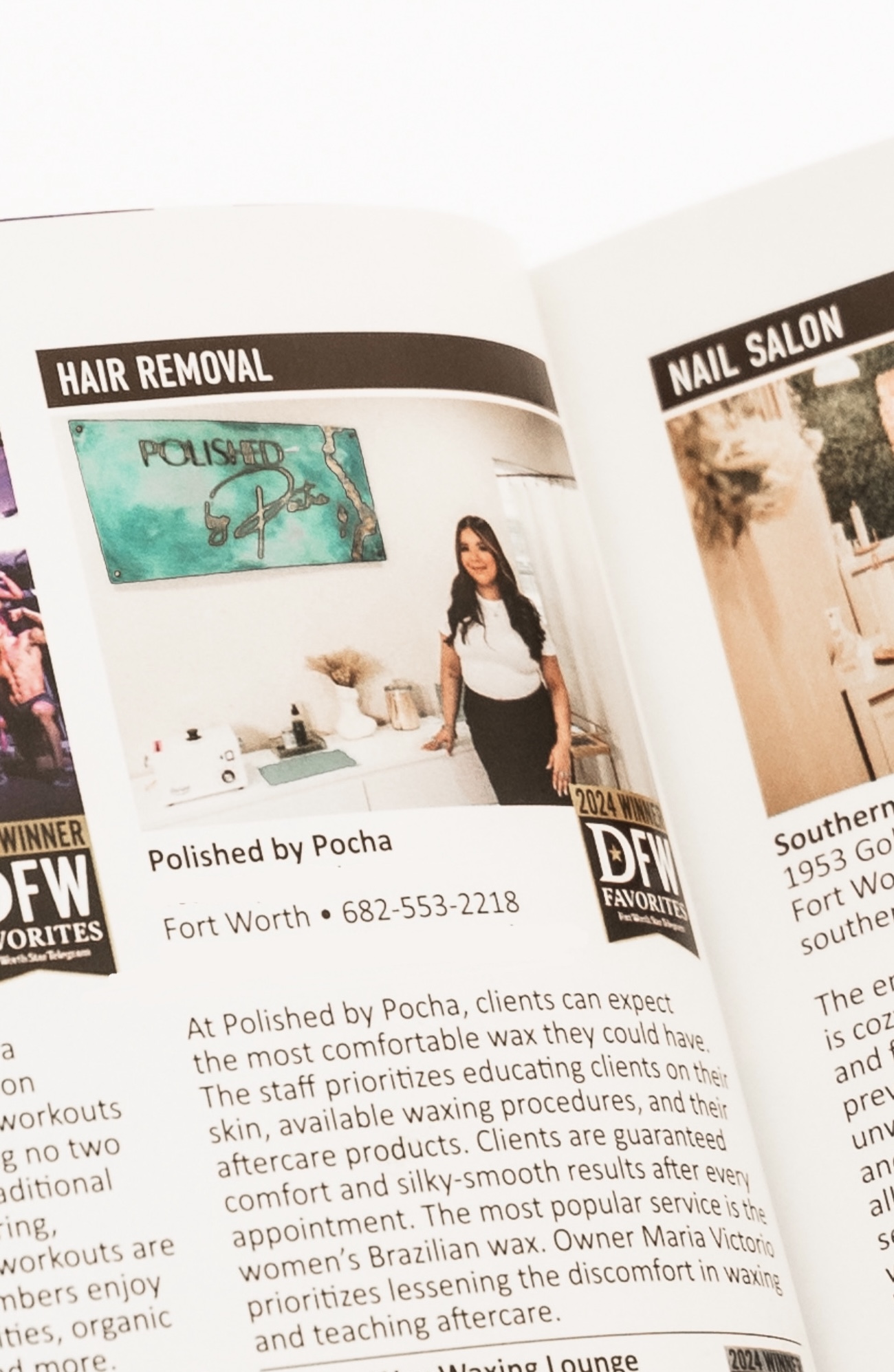 I think what sets me apart is what I’ve been able to accomplish at such a young age, but also the values I stand on. Polishedbypocha is a 6x award-winning business. I won my first award in 2023 at just 19 years old, becoming the first waxer featured in DFW Favorites Magazine. I’ve been featured every year since, which is amazing, but awards aren’t everything to me.