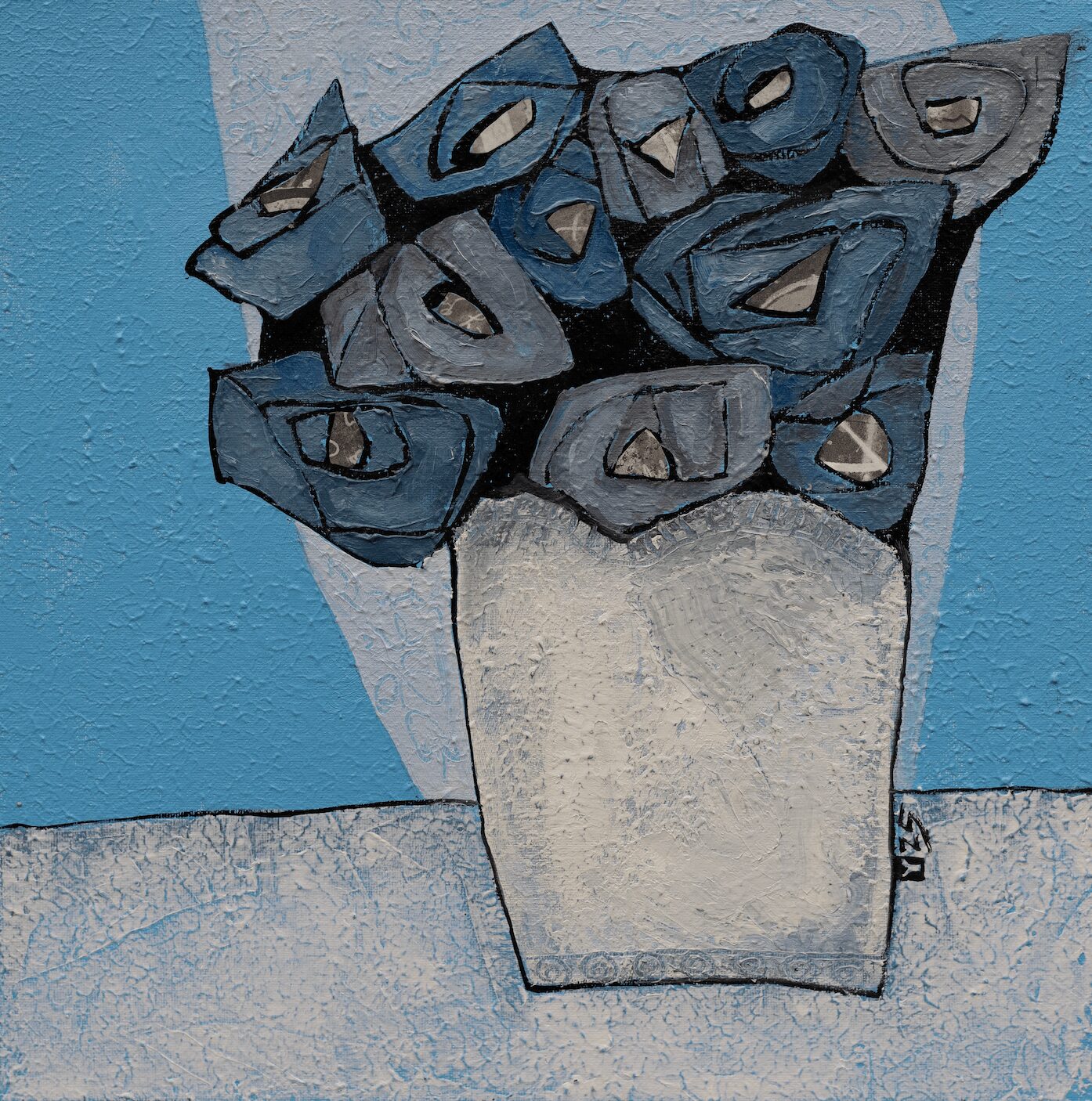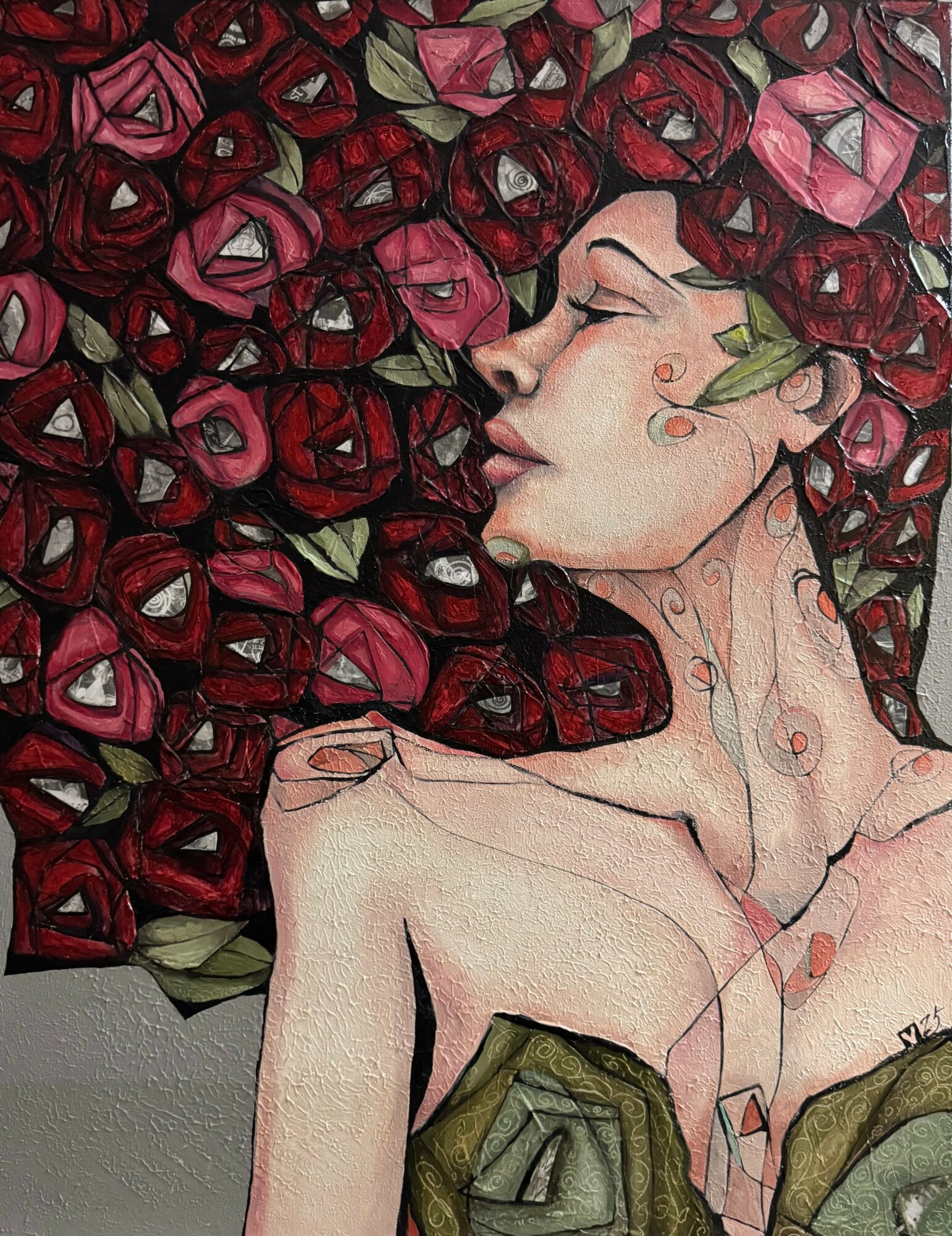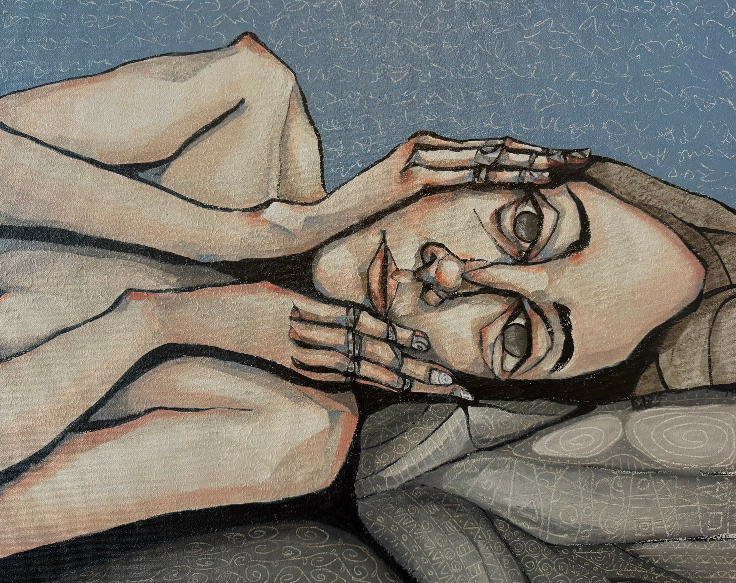 Then the COVID-19 pandemic hit, and suddenly I had the chance to paint a lot more regularly. By 2022, artists like John Singer Sargent and Egon Schiele were really influencing my style. Things got real in 2023 when Sparrow Gallery in Denison invited me to show my work, and I started joining local art guilds. These days, I’m working with oil, acrylic, ink, and collage, and loving this late-blooming, fulfilling career—something I never thought I’d experience.