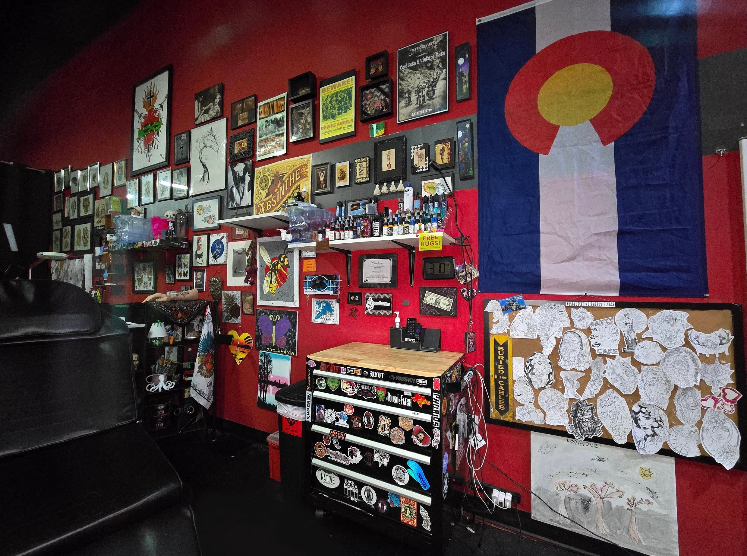 My biggest advocate and supporter has been my fiancé AJ. He pushed me to further my career in helping me get my apprenticeship with Jack Terrell. He taught me a lot of what I know now that made me a better artist. After my apprenticeship i was welcomed into Mario Padillas shop who is someone that has been tattooing me a lot personally over the years and helped give us pointers on opening Lifetime Body Art. My close family and friends were there helping put in the work to get the shop cleaned up, and set up exactly how we envisioned. My brothers, parents and friends all made the studio a functional place to work like building our piercing booth and other things around the shop. After we officially opened up in May 2022, our first artist, aside from myself, is Kaylee Perry. She has been an amazing employee, artist, and friend over the years. Another loyal artist of ours is Tyler Larson who came from Houston and has been a great addition to our team. Our artists are all driven and passionate about the craft and we love being able to grow as artists and a business together.