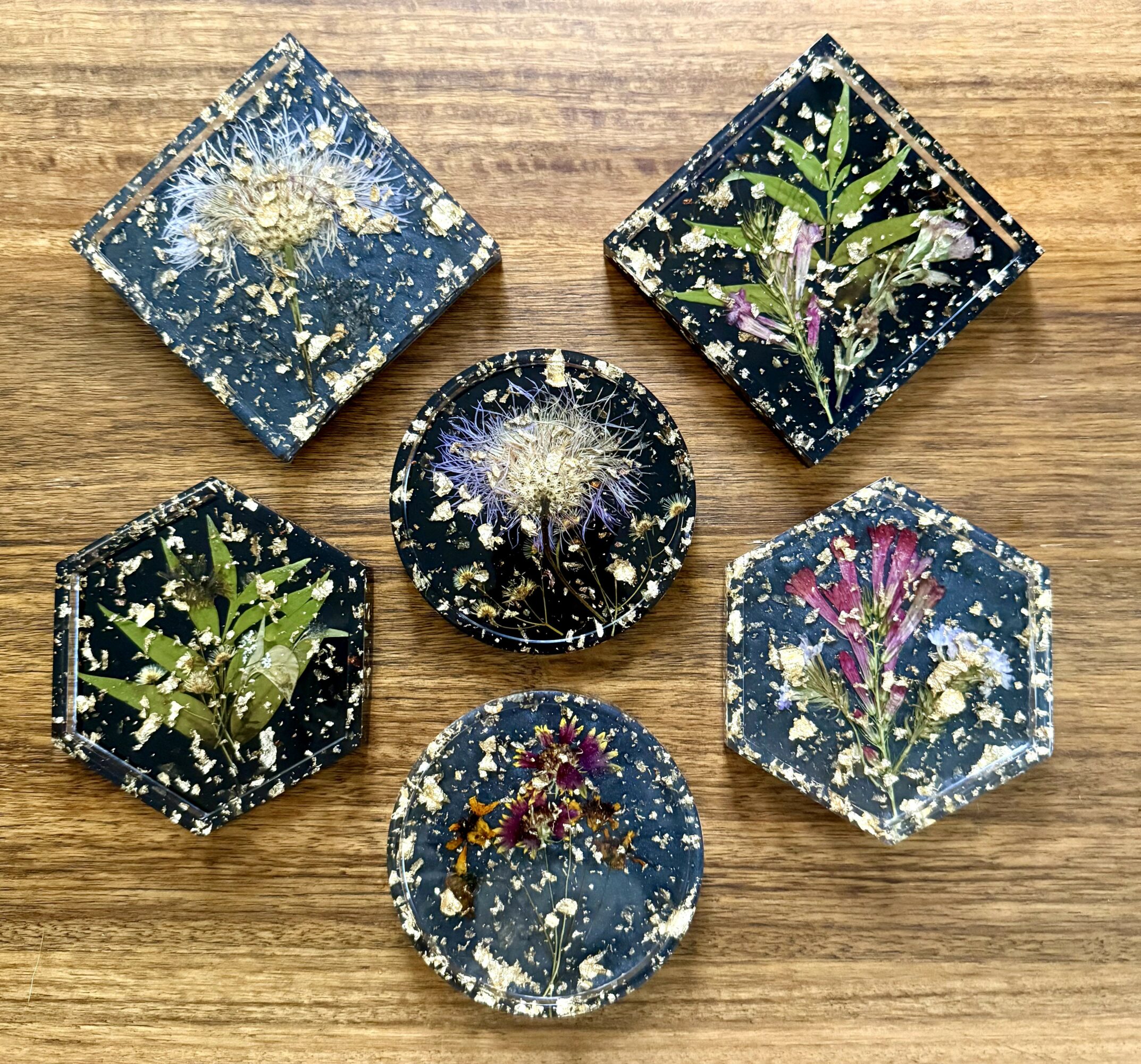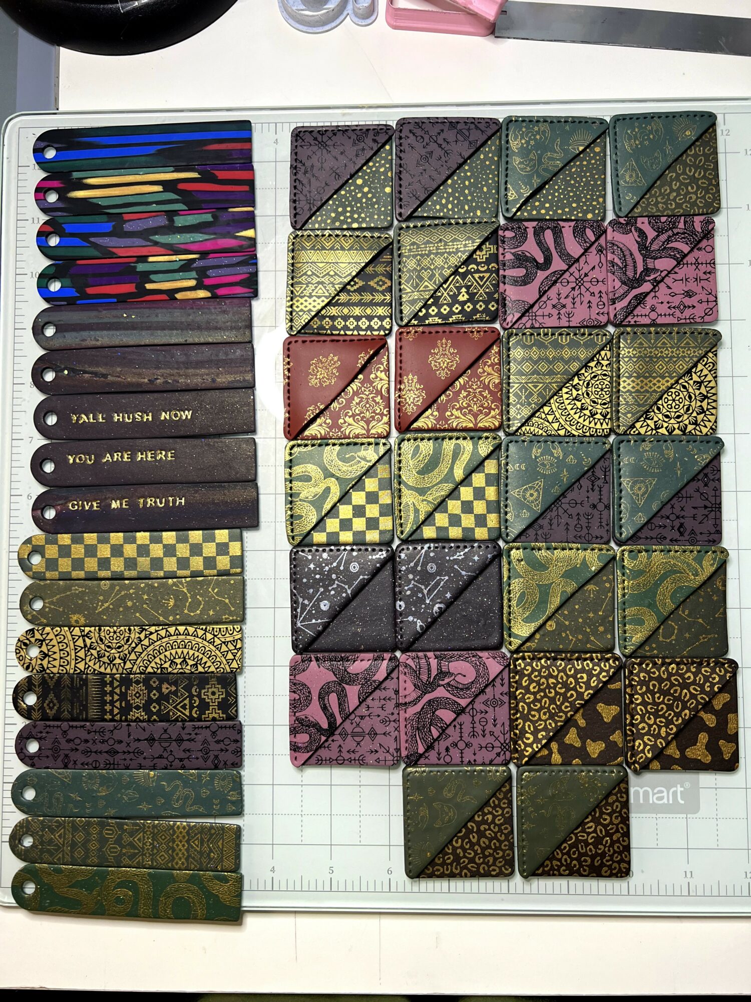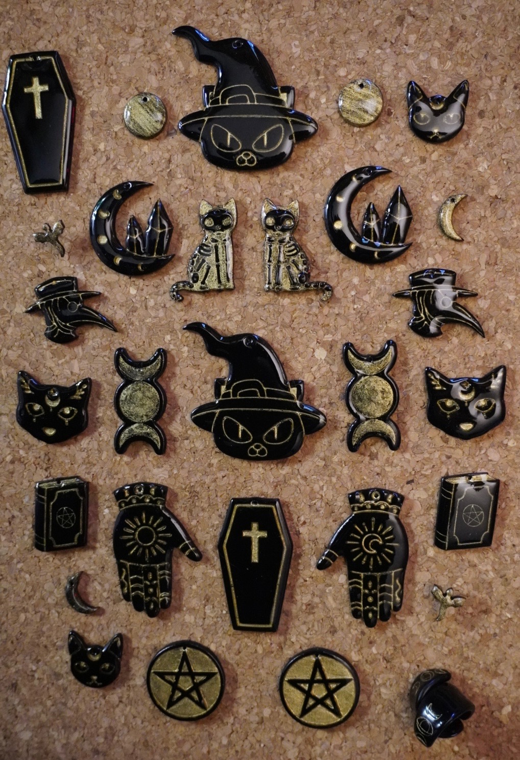 I love to make things that I want but can’t find: either it doesn’t exist yet, it exists but it’s out of my price range, or it might exist, but it’s not exactly my style. I mainly specialize in black and golds, but I thoroughly enjoy the macabre, the creepy, the modern, the bright, the bold, the weird, and the nerdy. I’m known for working with polymer clay because I don’t like enjoy heavy earrings and it’s a really lightweight product. I’m also known for working with gold plated jewelry hardware (especially earrings) as I’m allergic to all metals but gold. I am a huge nerd and a big fan of romantasy, so I also try to keep dragons and bookmarks around whenever possible. I’ve recently started branching out into resins to make more jewelry, accessories, and home decor items that I genuinely want in my home (e.g., sprinkles coasters have my heart right now). I’m most proud that I’ve had the courage to chase my dream of being a full-time artist (I currently work a 9-5) and encourage anyone else to do the same: chase that dream (provided whatever your dream is doesn’t hurt others).