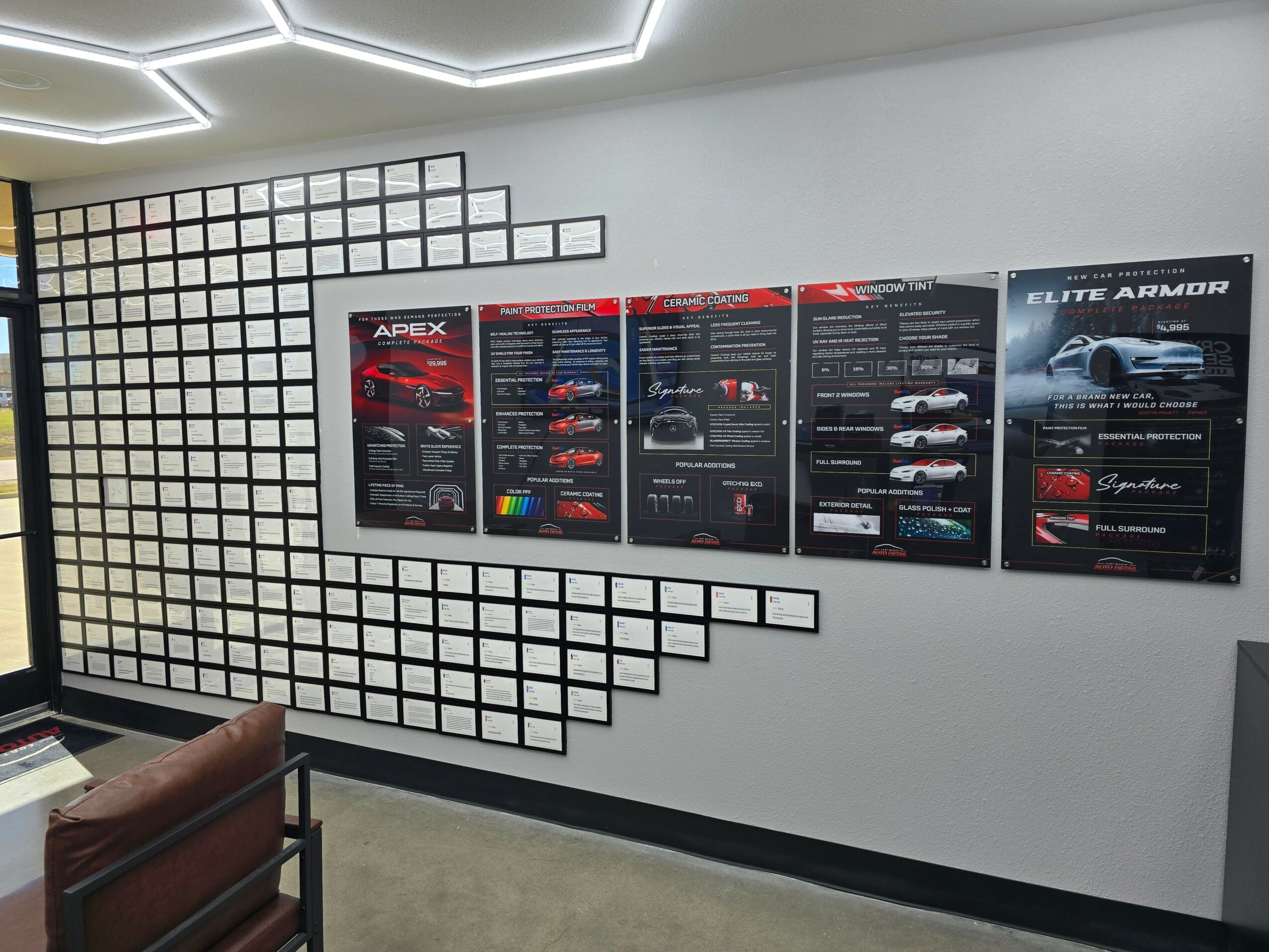 We specialize in new vehicle protection, primarily window tint, paint protection film, and ceramic coatings. While tint and ceramic coating can be done at almost any stage, paint protection film is most effective on a new vehicle, before damage ever happens. Our most popular solution is what we call our Lead Armor package, which combines full front paint protection film, ceramic coating on the rest of the vehicle, and ceramic window tint. It’s designed to give clients the best balance of protection, appearance, and long-term value.