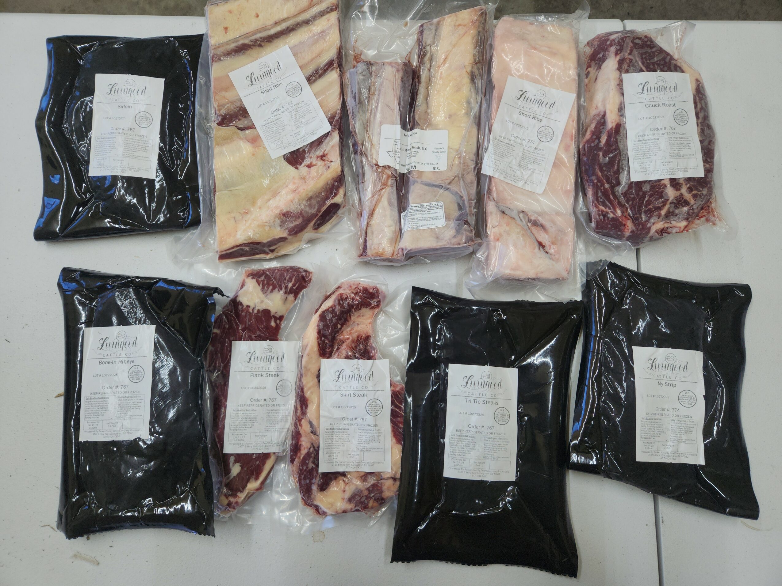 - Ribeye, Sirloin, Tenderloins, Chuck roasts, New York strips,