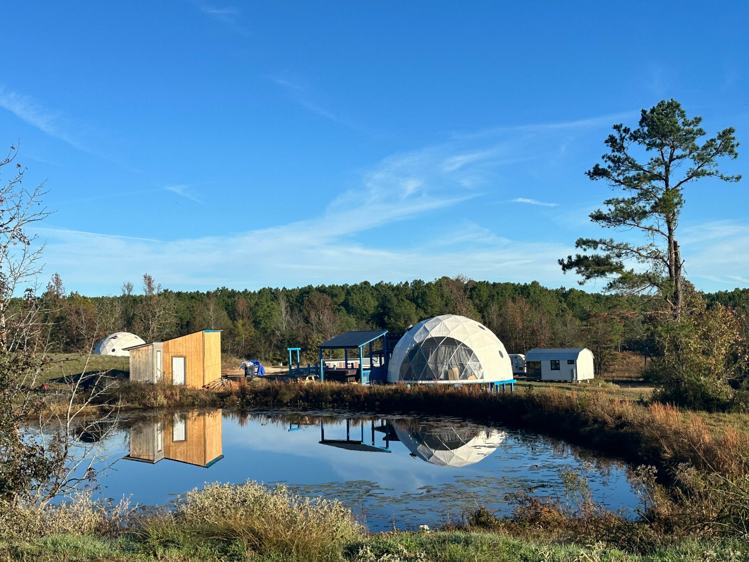 My family and I have been going to Broken Bow Oklahoma for about 15 years. Mostly to go fishing and camping at Beavers Bend State park. In 2019 be purchased two cabins in the area and rented them out on the weekends to cover expenses. Fast forward to 2025 and we now have 5 cabins in the area and focus on creating unique family and couples stays in our cabins, tinyhouses and geodesic domes. We have the only geodesic domes you can rent in the area.