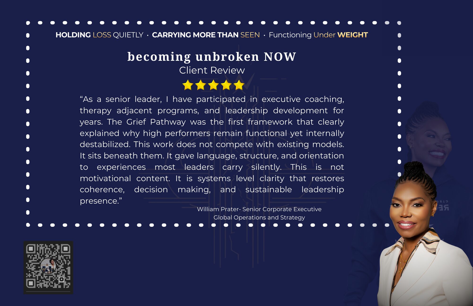 From Courageous Rebirth to Becoming UNBROKEN NOW. I did not just endure grief. I decoded the architecture grief disrupts. I did not set out to become known as the Grief Pathway Doctor. I became her because I could not find language for what was happening to me or to others.