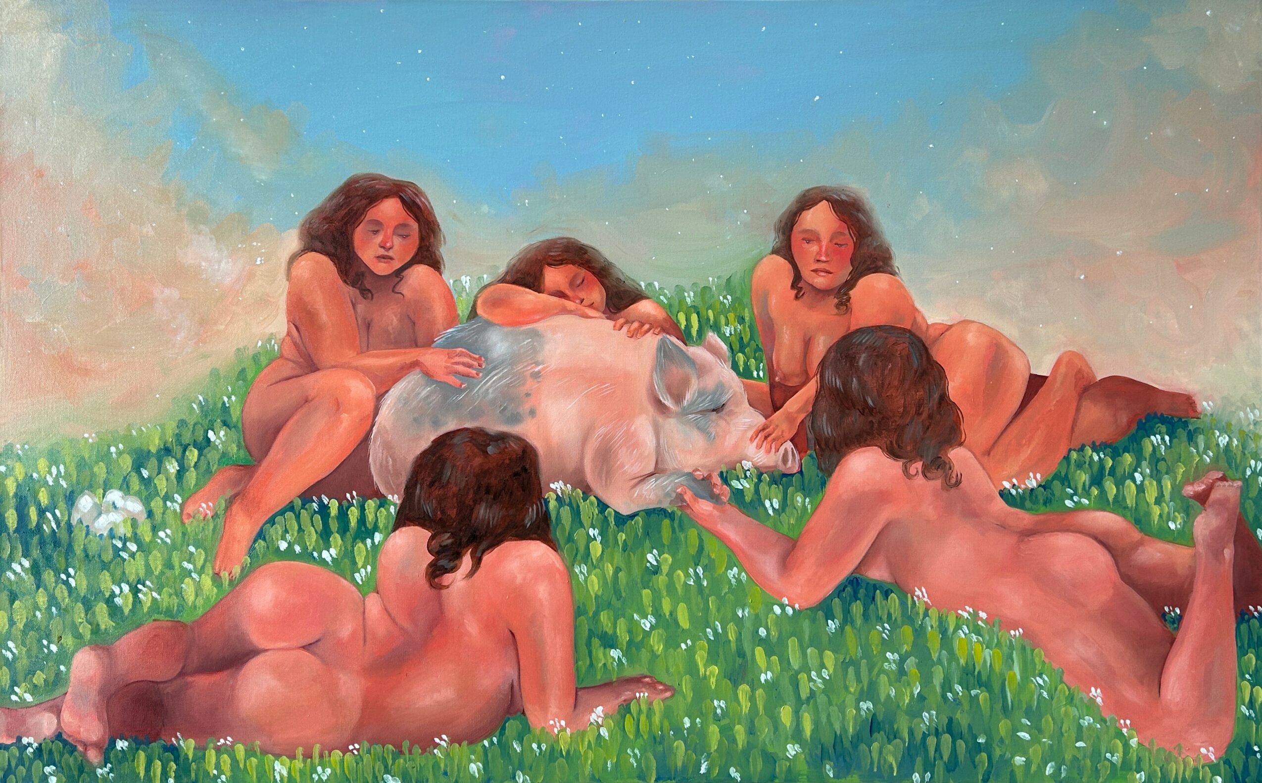 I identified self taught until i attended UNT in the fall of 2020, where I majored in Studio Art with a concentration in Drawing & Painting and minored in Art History. Though I wasn’t taught a lot of the basics you need for painting (i know, crazy) because the curriculum kept changing due to the pandemic, I did have some extraordinary professors; Elaine Pawlowicz, Jamison LeBlanc, Matt Bourbon, Christian Fagerlund, and Brian Scott Campbell, who helped me develop my portfolio, with either techniques, how to think deeper, how to depict ideas better, or just with feedback on critiques. Figure Drawing classes as well as Ceramic courses, helped me think more about ideas in a 3 dimensional way, wether that is how to apply it technically on a painting, or just conceptually; they also helped with my overall technique, i pride myself in painting hands, they are so proportional!