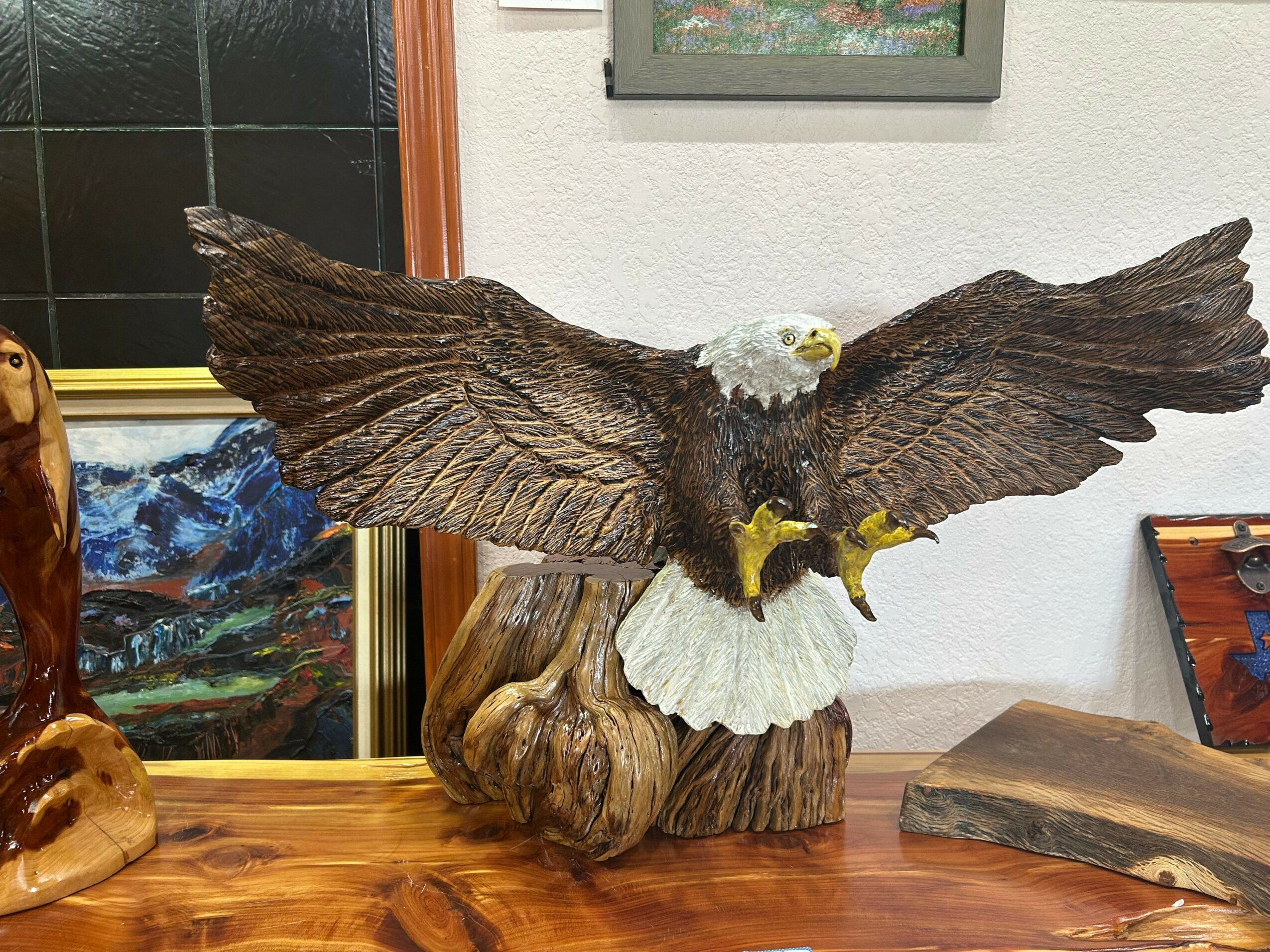 I think for the first five years it was very frustrating to want to create a sculpture and not be able to put it on a piece of wood but after a while I started to see it in the depth in the wood. In 2004 one other hard event was trying to take over the business after my divorce since now it was just up to me to make it work, the art and the managing part, something that was shared before.