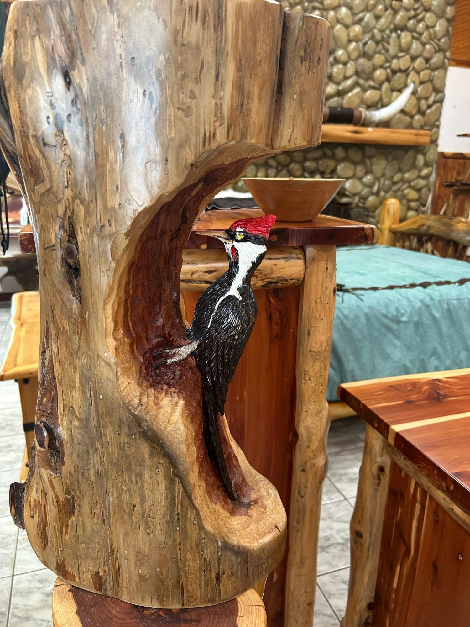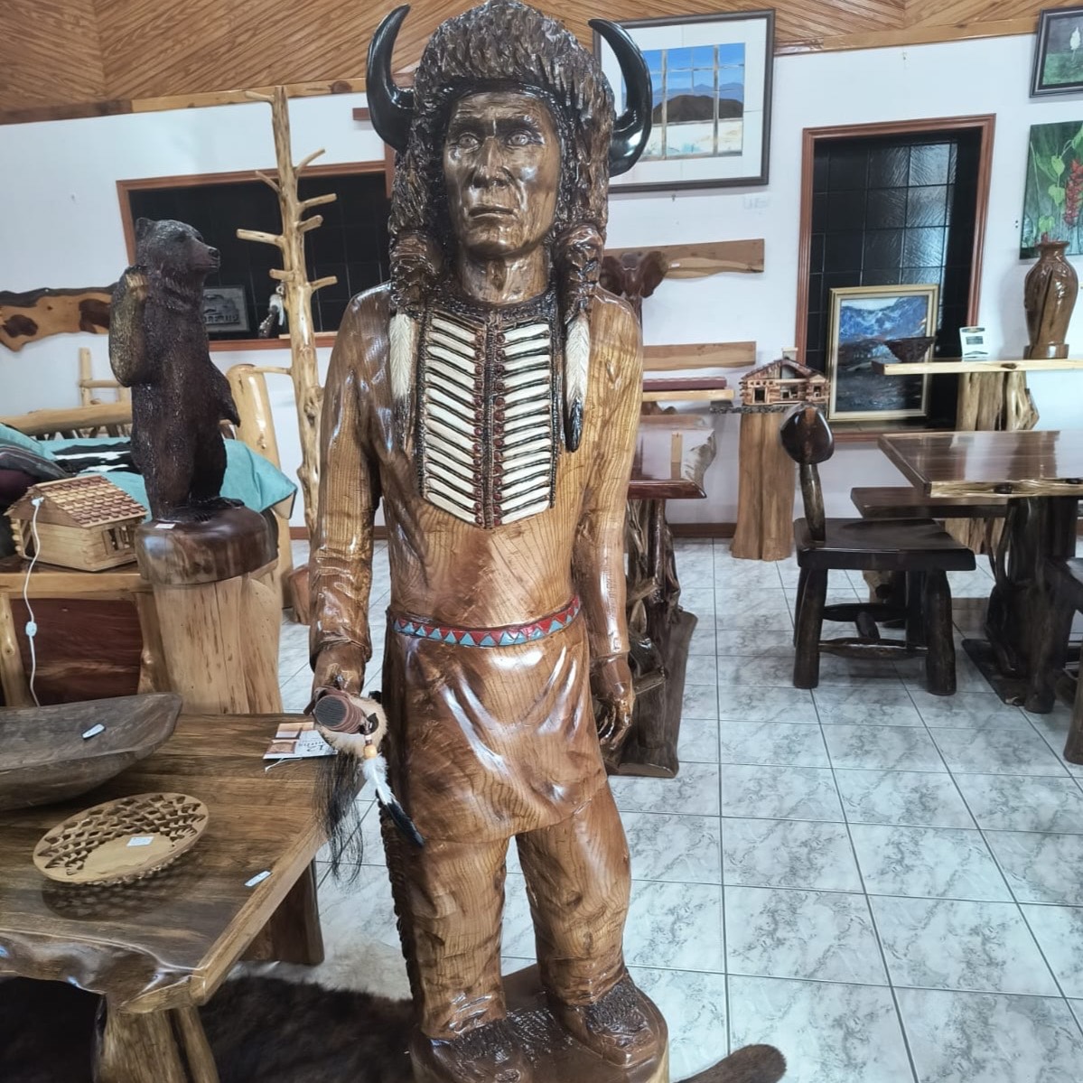 I put a lot of pride into my art. My pieces are very detailed. I like to give my customer the best that I can do. Every carving or furniture I make i make sure is going to be of satisfaction for them, and of course mine that’s what I enjoy seeing people happy with my work. I believe my art and furniture are very different from other peoples because it is just better quality and realism. I do some custom work, but there are certain pieces that I choose not to because of the time issue. I stay very busy most of the year.